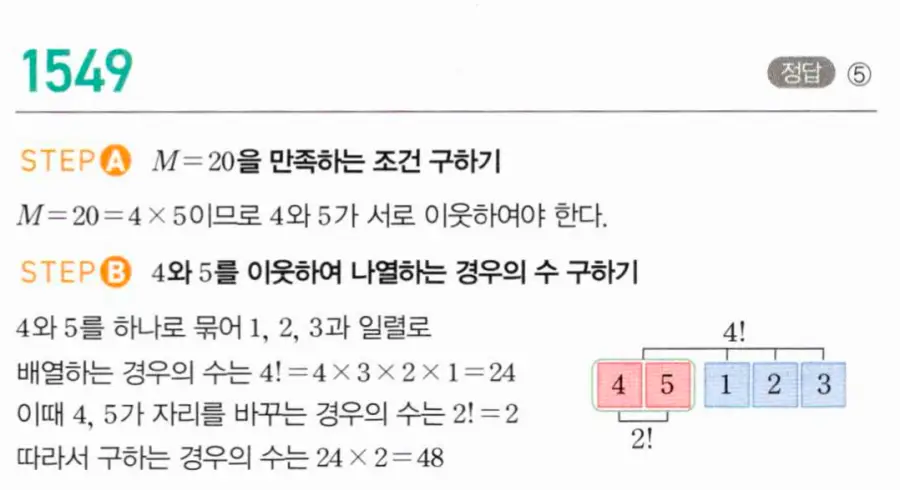 마플시너지 공통수학1 11단원 1550번 │ C,D 또는 C,E가 이웃하는 순열