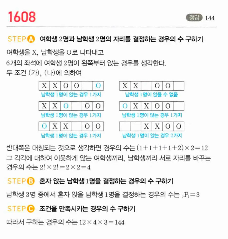 마플시너지공통수학111단원1609번일등급순열방배치인접조건경우분류합의법칙곱의법칙경우의수위치별분류6개방고등수학수학문제풀이마플워크시트공간배치조건부순열수능대비