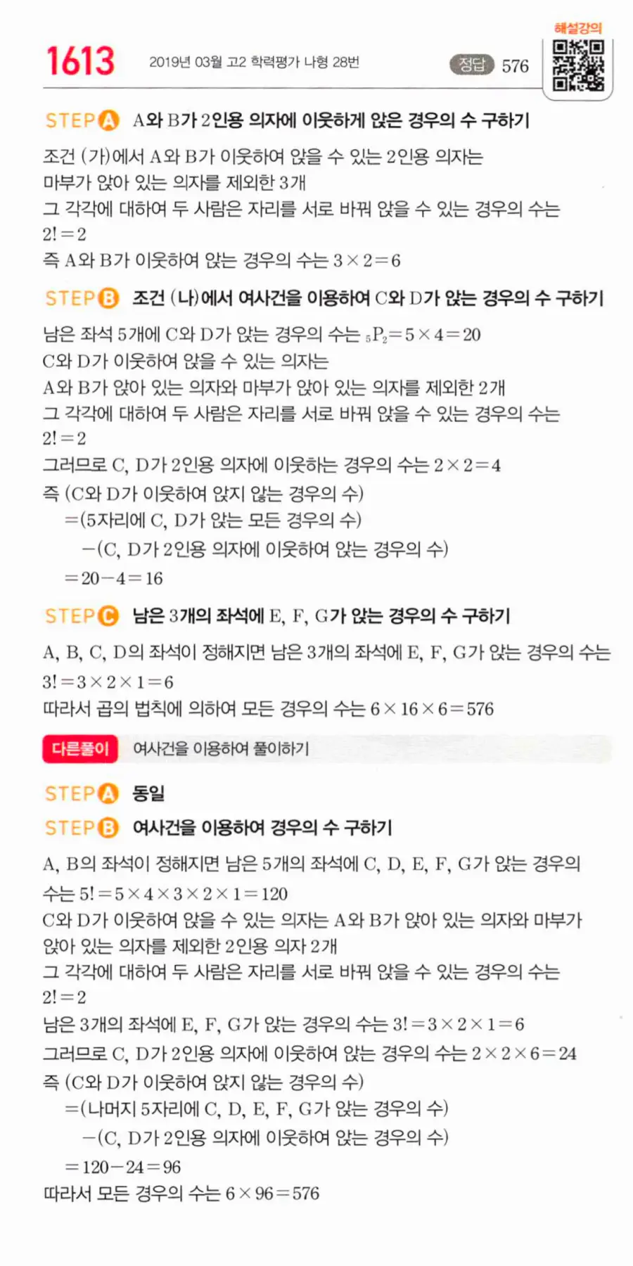 마플시너지 공통수학1 11단원 1614번 │ 승합차 가족 7명 좌석 배치