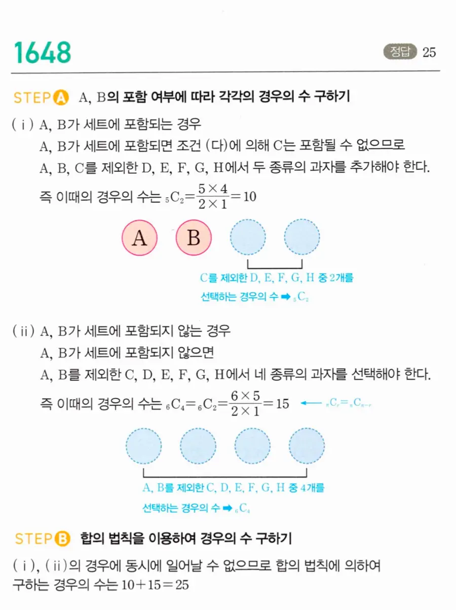 고등수학 개념사전 231 │ 조합 기초 고등수학 개념사전 227 │ 합의 법칙 이해 고등수학 개념사전 228 │ 곱의 법칙 이해 연산 워크시트 63 │ 특정한 조건이 있는 조합의 수 연산 워크시트 62 │ 조합 연산 워크시트 59 │ 여러 가지 경우의 수 연산 워크시트 58 │ 합의 법칙과 곱의 법칙