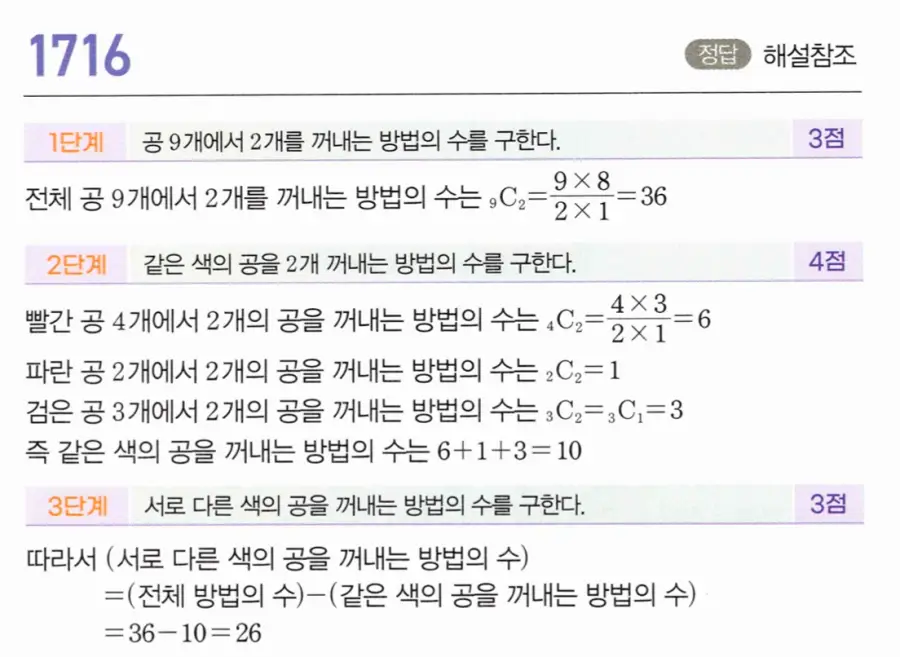 • 서술형 답안에서 여사건 관계식을 명시하지 않고 바로 뺄셈만 쓰면 3단계 점수를 잃을 수 있습니다.