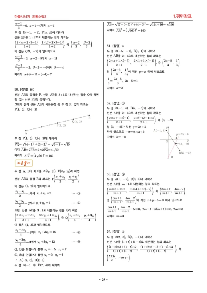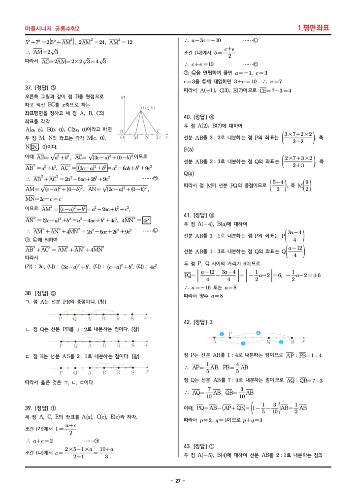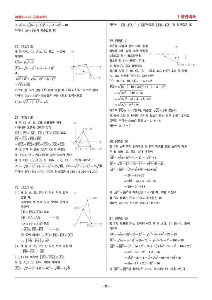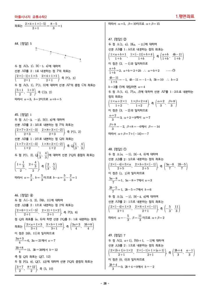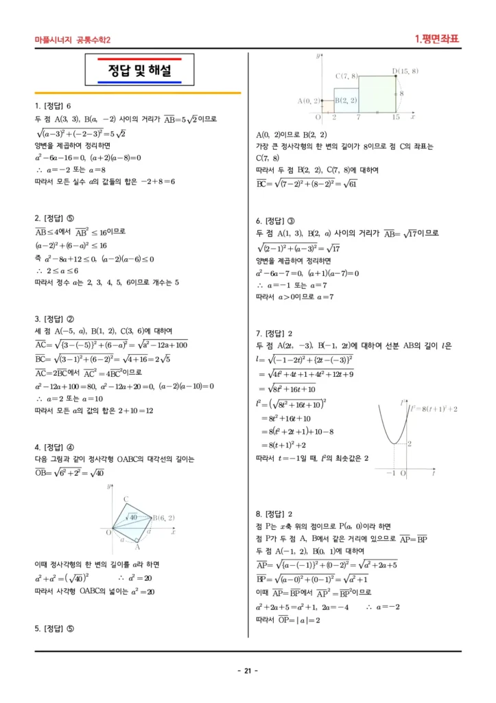 📚 마플시너지 공통수학2 (01. 평면좌표) 답지 PDF