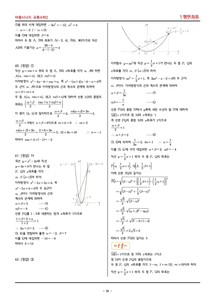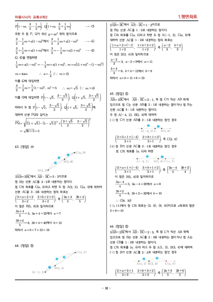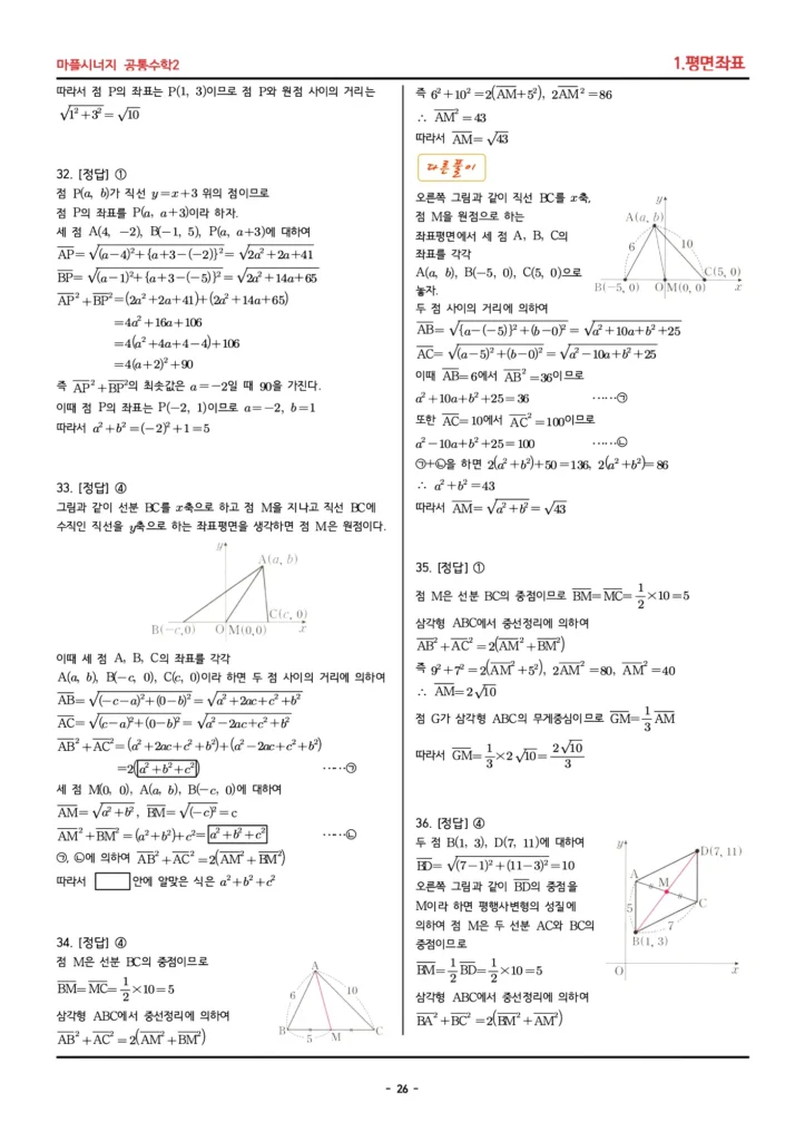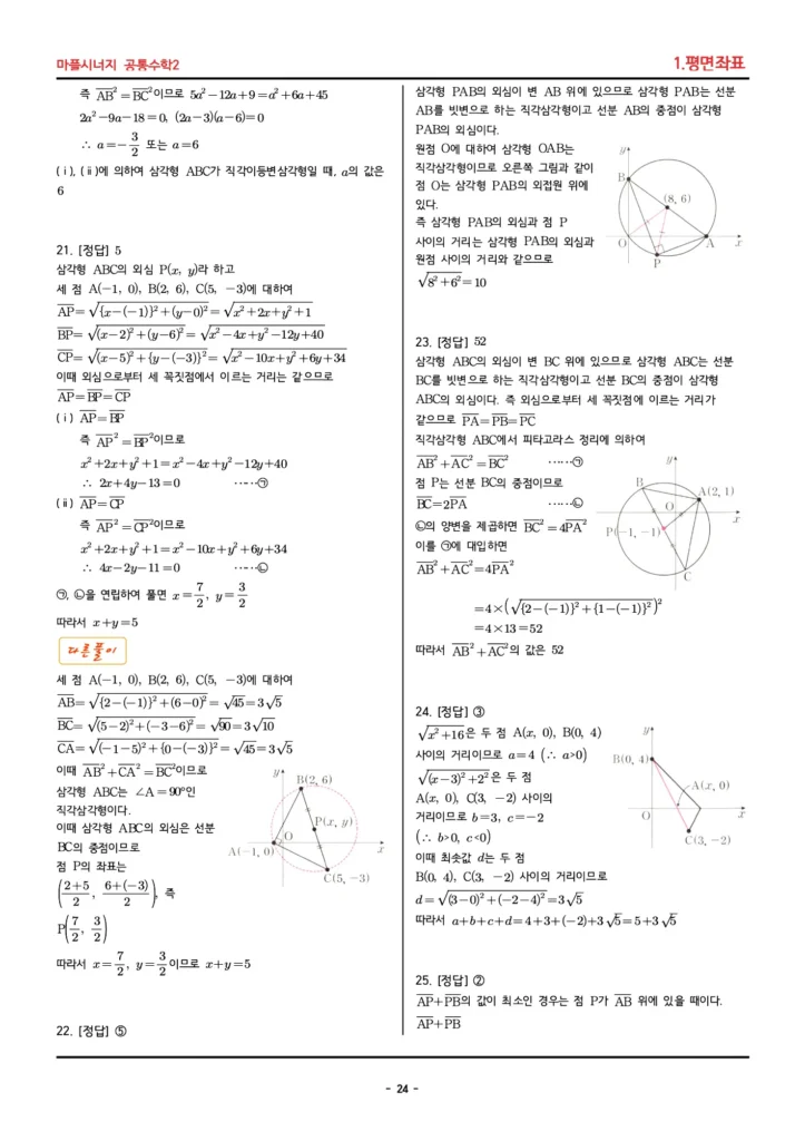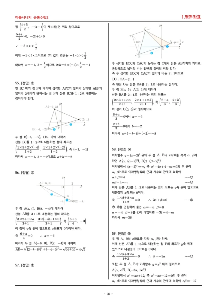 📚 마플시너지 공통수학2 (01. 평면좌표) 답지 PDF