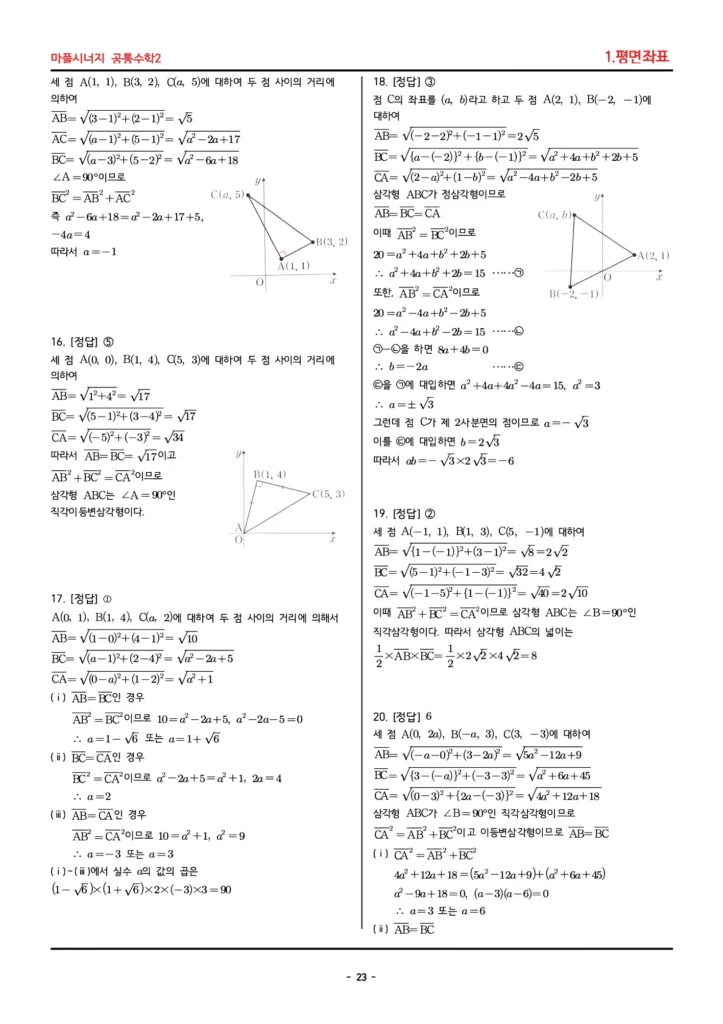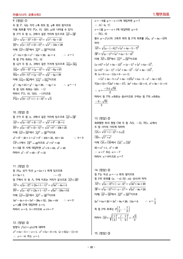 마플시너지 공통수학2 답지 (01. 평면좌표)