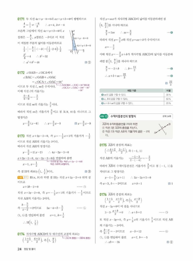 쎈 공통수학 2 답지 02 직선의 방정식 (정답 및 해설)