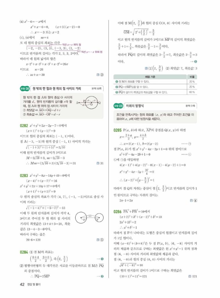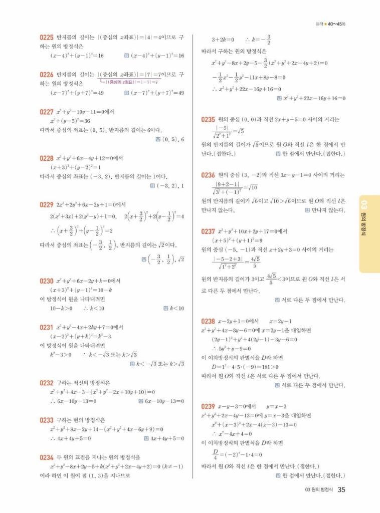 쎈 공통수학 2 답지 03 원의 방정식 (정답 및 해설)