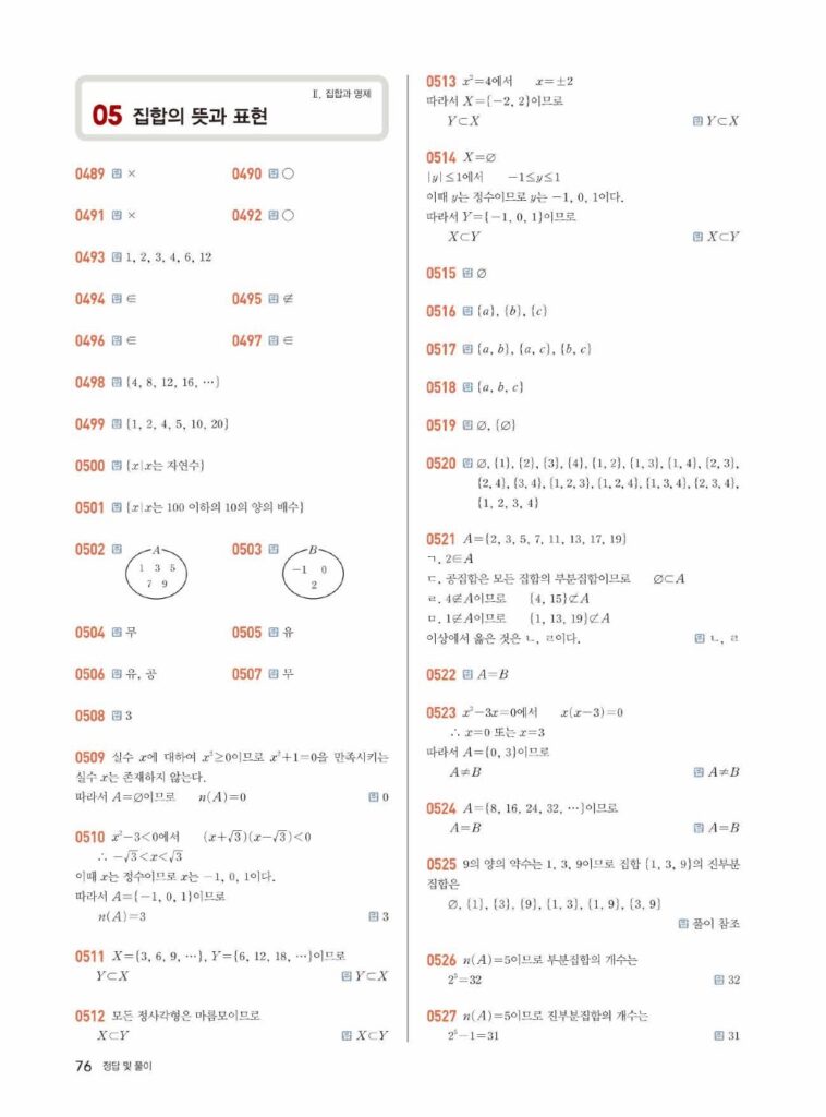 태그: #쎈공통수학2 #공통수학2답지 #쎈답지 #05집합의뜻과표현 #집합답지 #고1수학 #수학답지 #쎈PDF #좋은책신사임 #부분집합