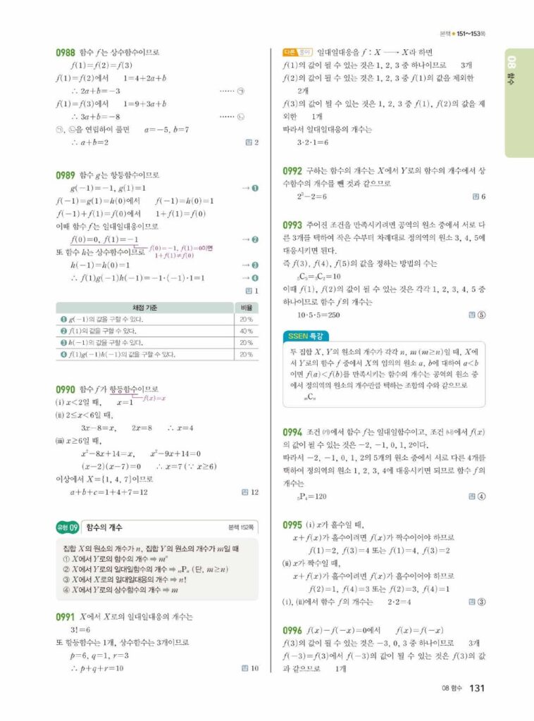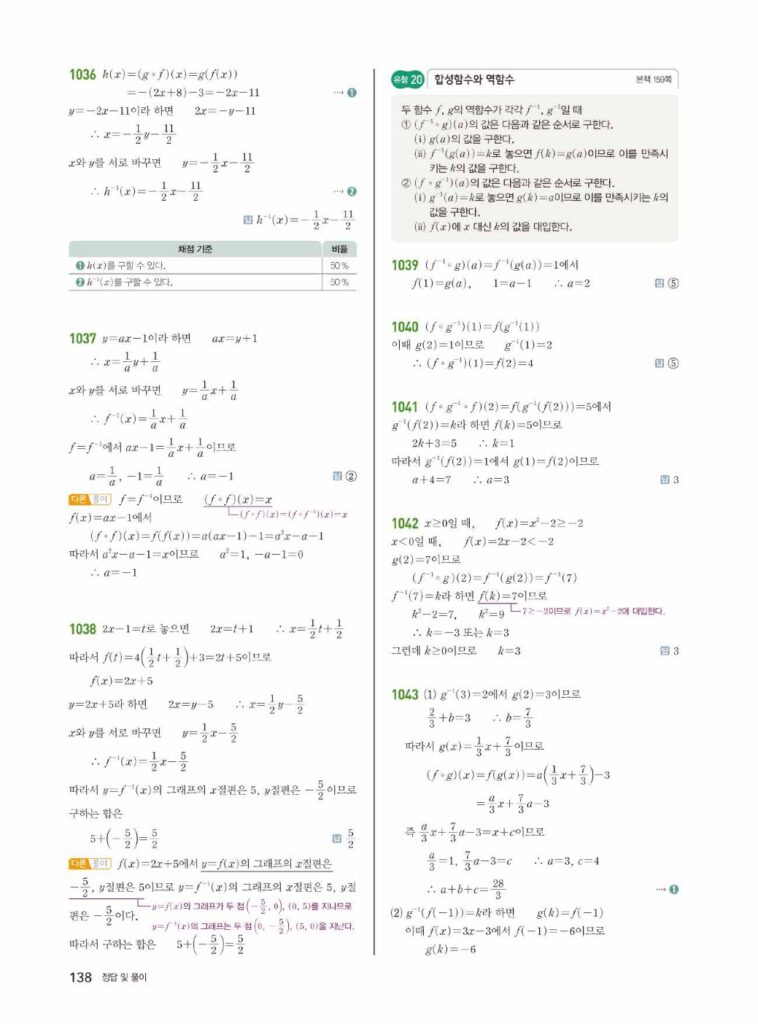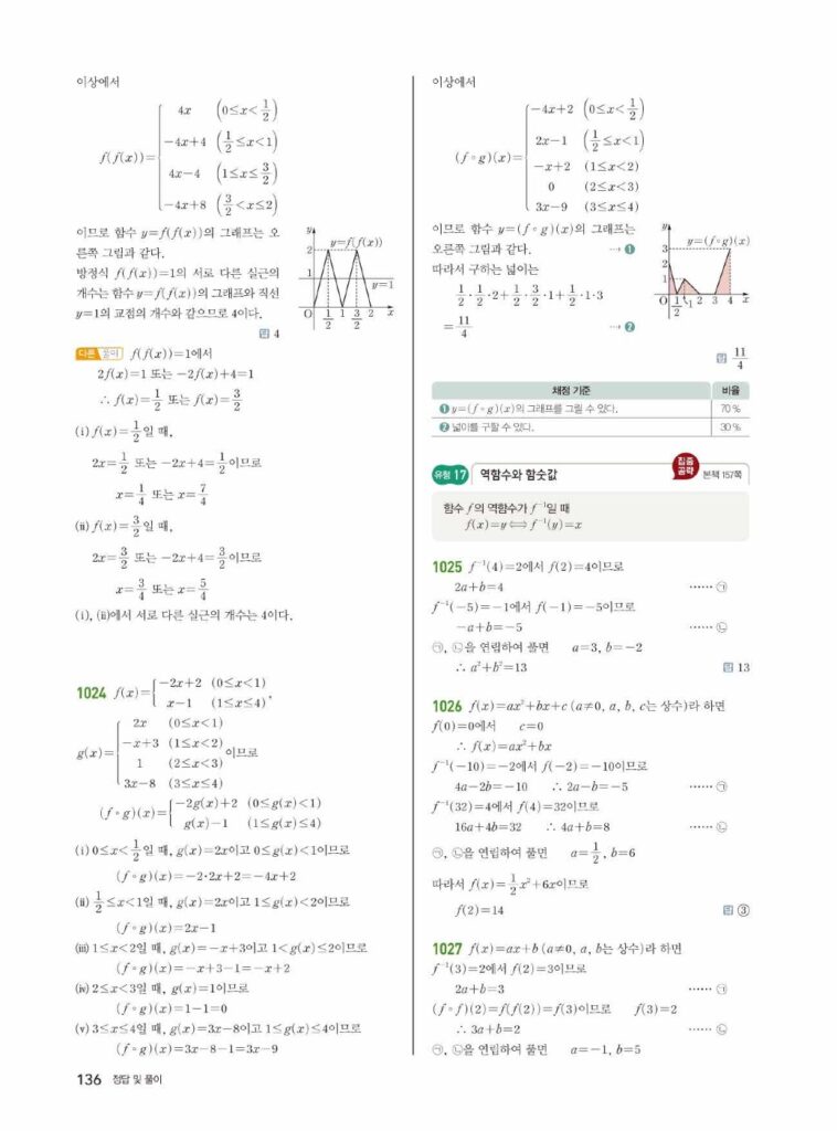 쎈 공통수학 2 답지 08 함수, 합성함수, 역함수 (정답 및 해설)
