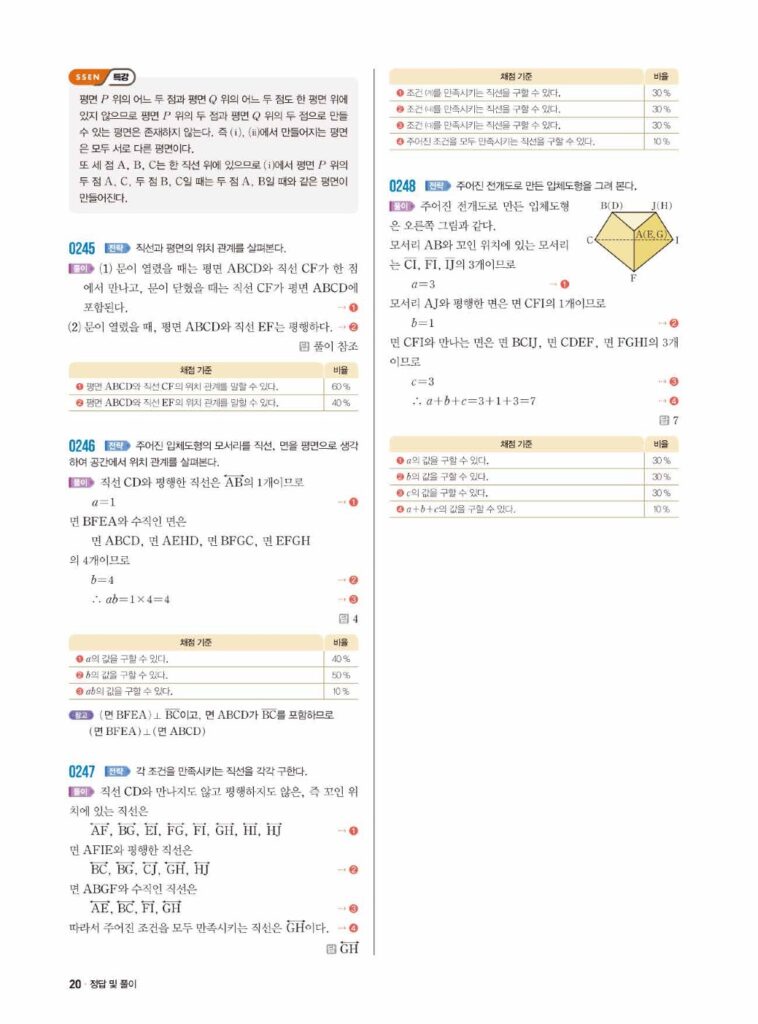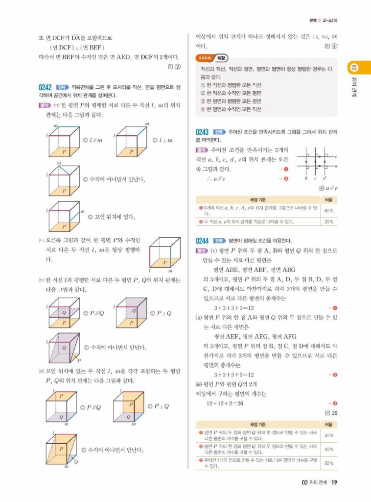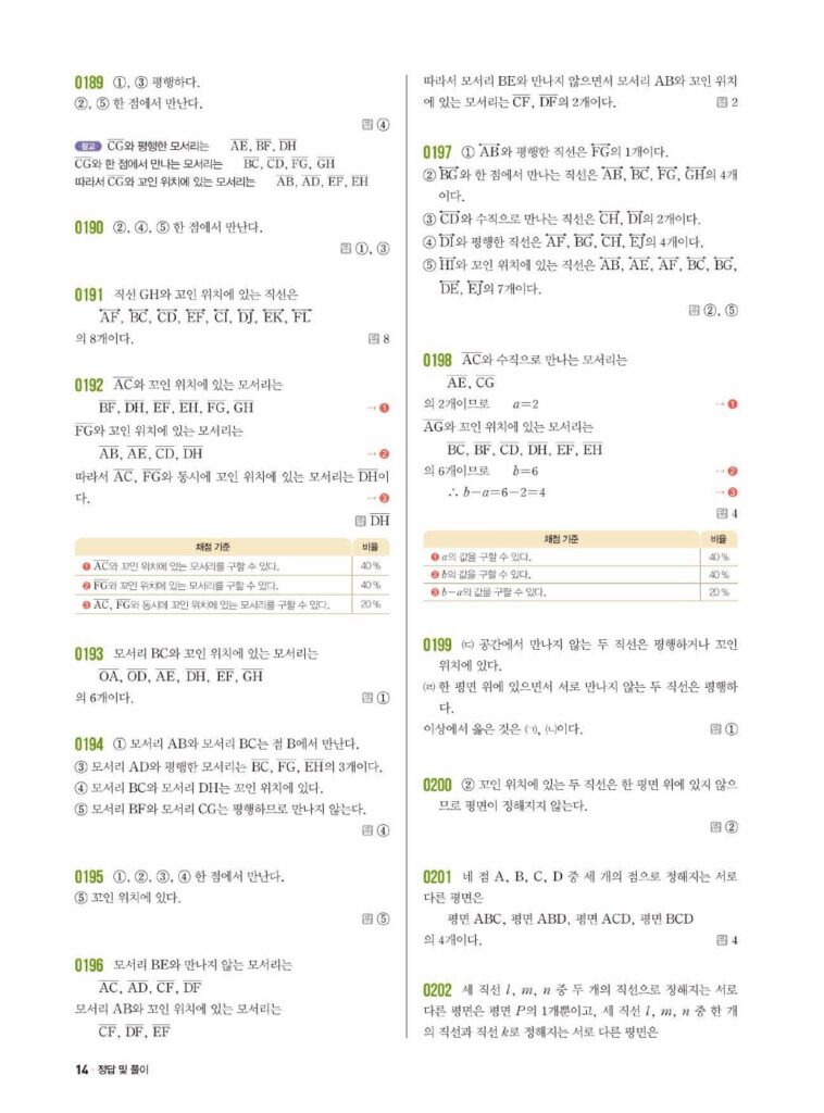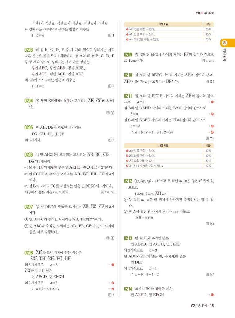 쎈 수학 중1-2 답지 02 위치 관계 (1학년 2학기)