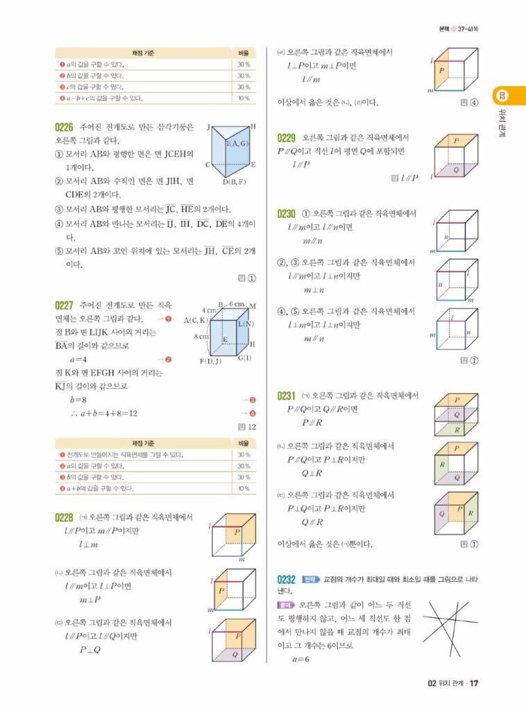 열심히 공부하는 모든 학생 여러분을 응원합니다. ‘꼬인 위치’는 직육면체와 같은 입체도형을 그려가며 직접 찾아보는 연습을 하는 것이 좋습니다. 다음에는 03단원 ‘평행선의 성질’ 답지 자료로 찾아뵙겠습니다.