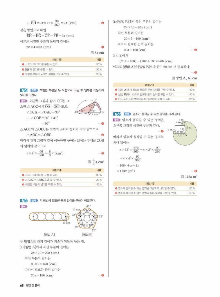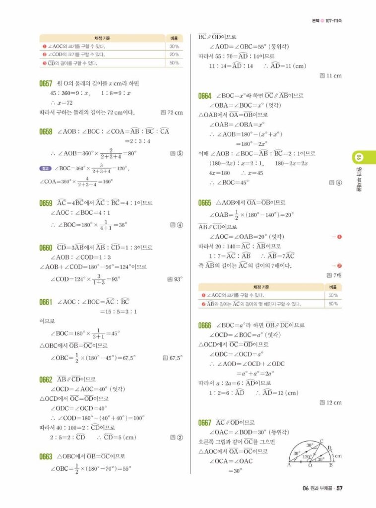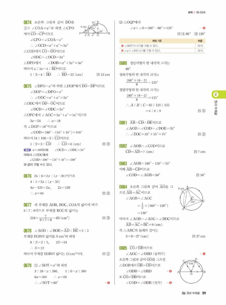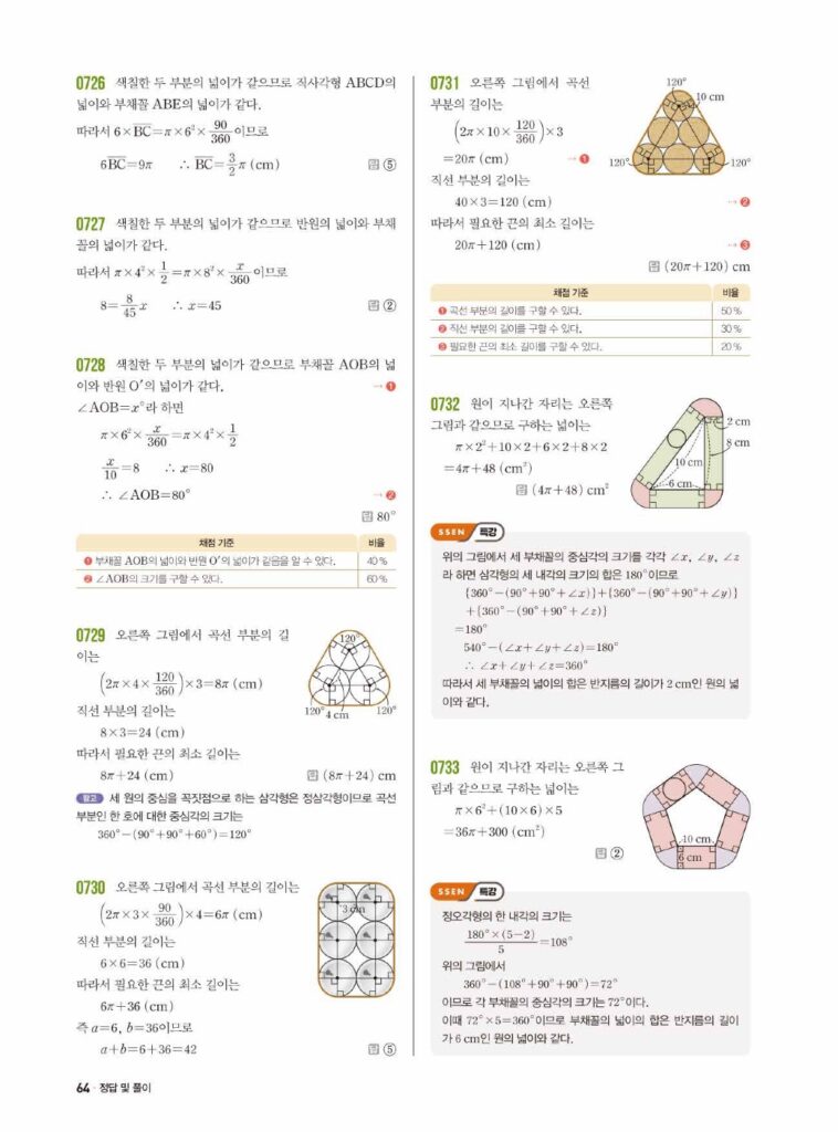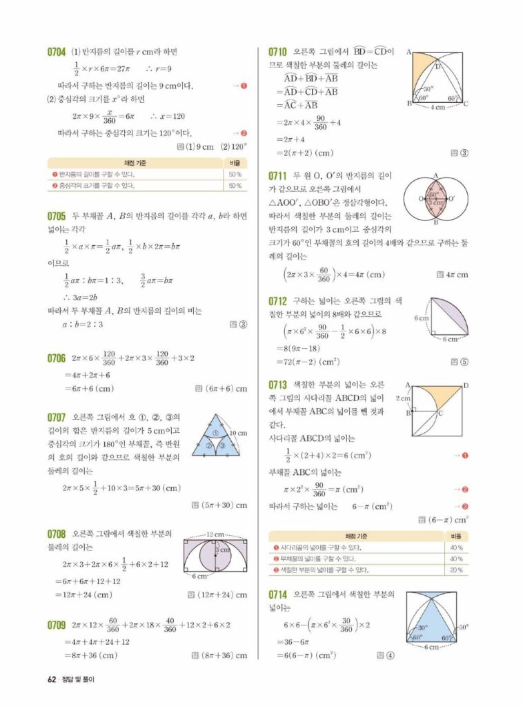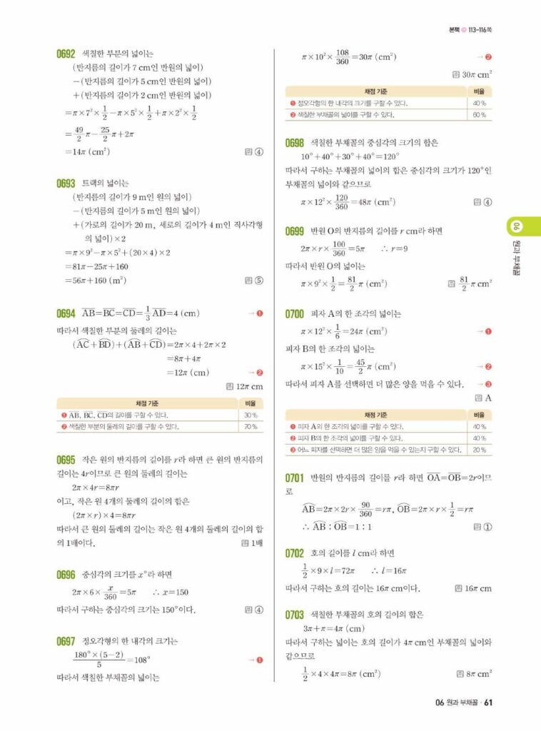 쎈 수학 중1-2 답지 06 원과 부채꼴 (1학년 2학기)