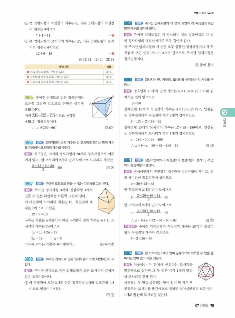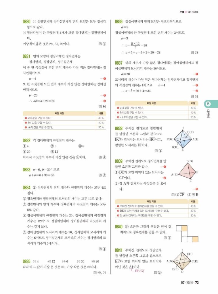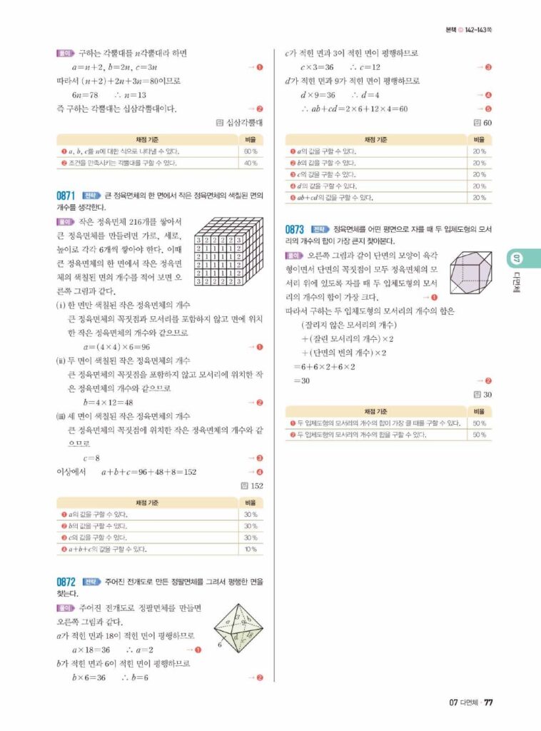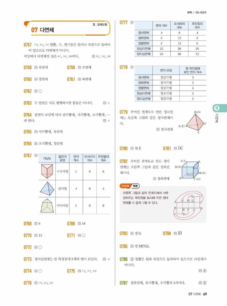 아래는 07단원 다면체 파트의 답지입니다. 페이지 순서대로 이미지를 업로드하며, 클릭하면 더 크게 보실 수 있습니다.