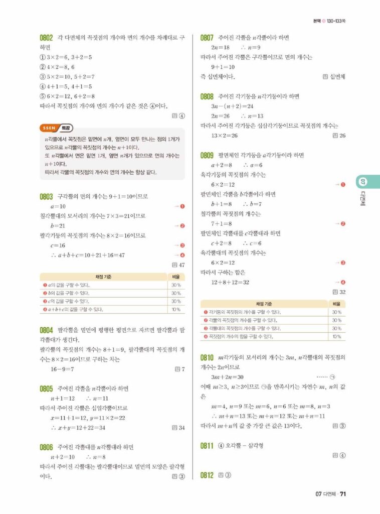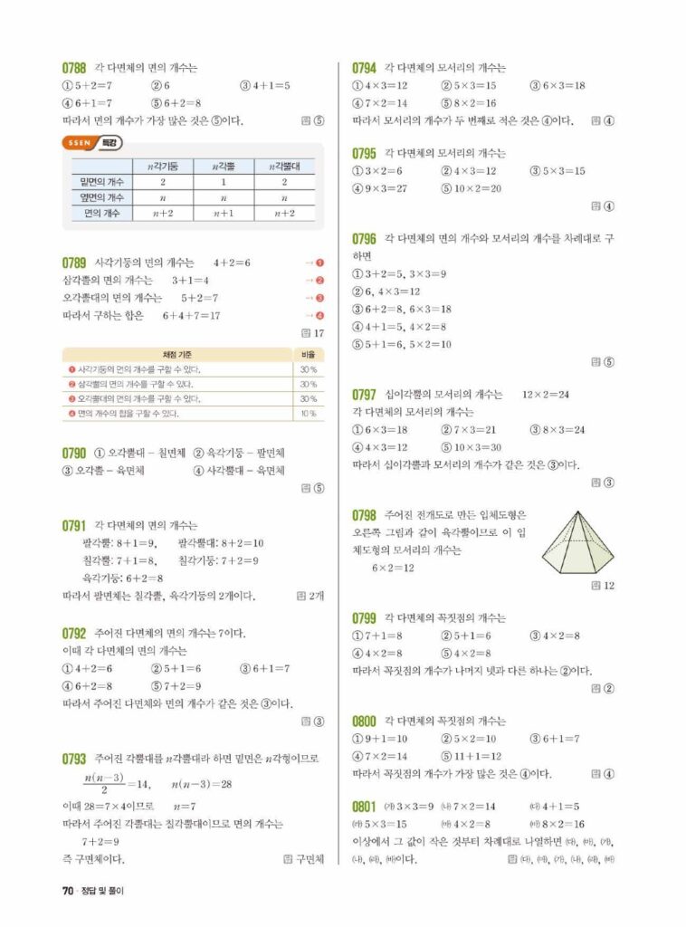 쎈 수학 중1-2 답지 07 다면체 (1학년 2학기)
