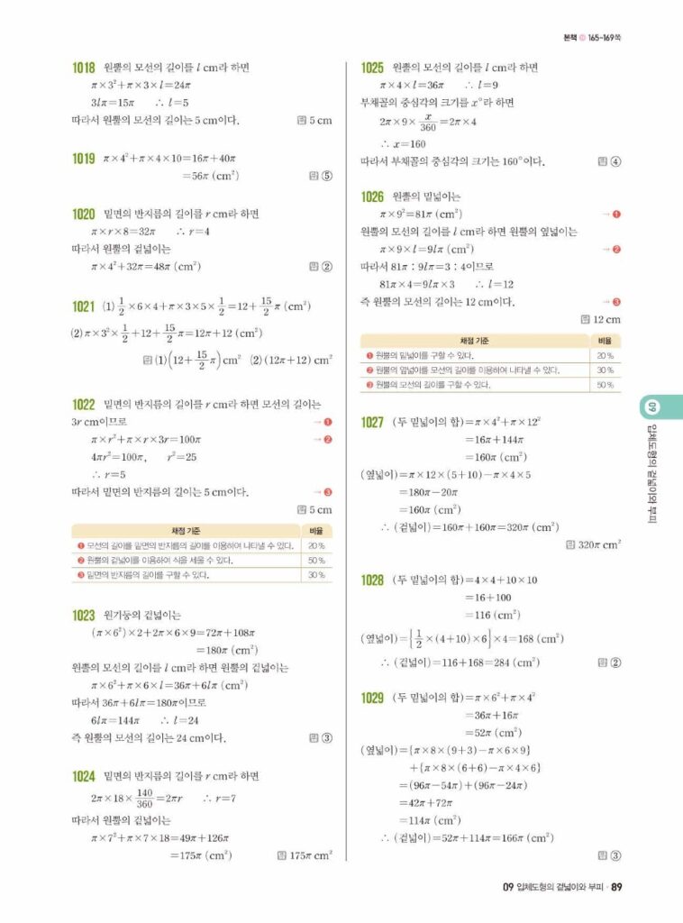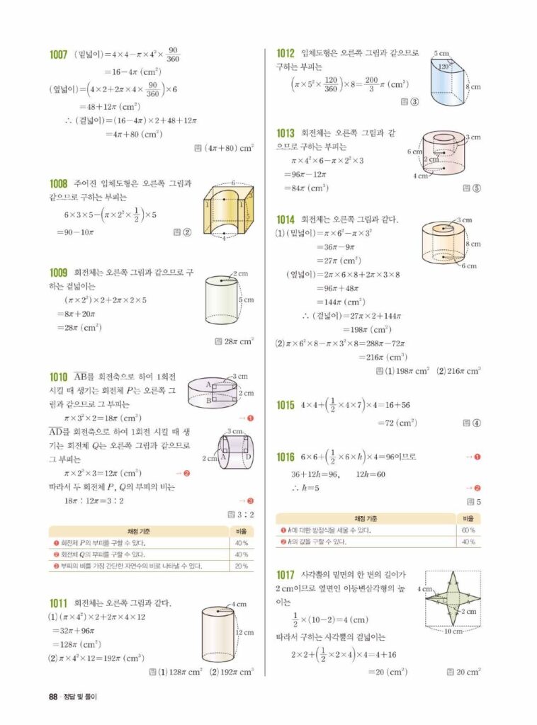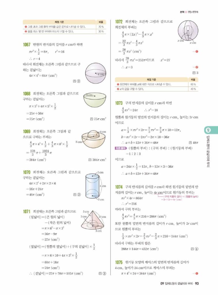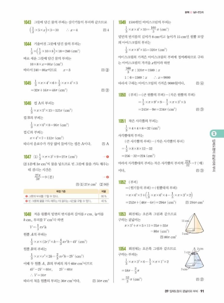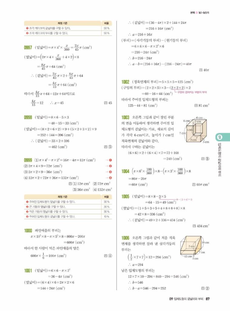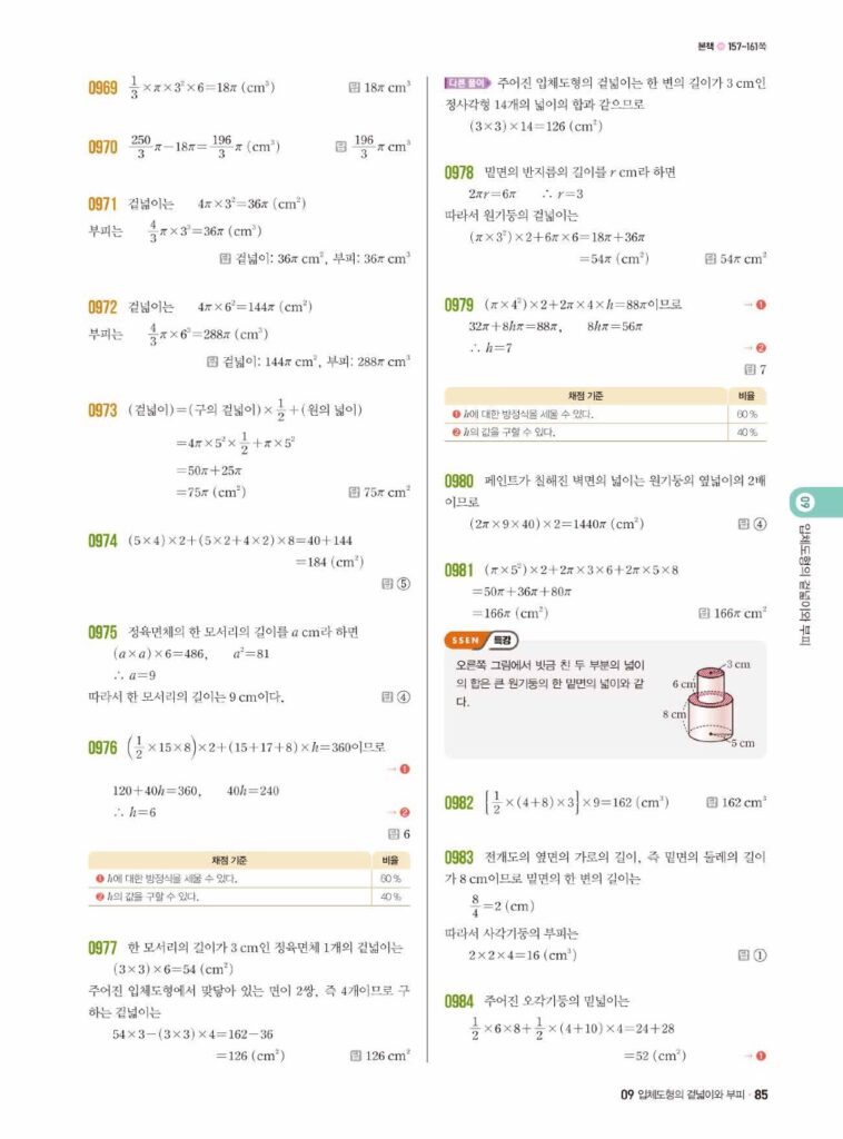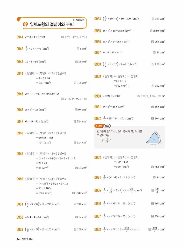 쎈 수학 중1-2 답지 09 입체도형의 겉넓이와 부피 (1학년 2학기)