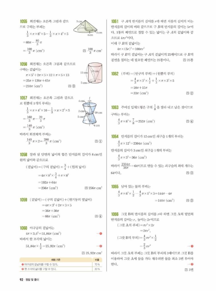 태그: #쎈수학중1-2 #쎈중1-2답지 #중1수학답지 #09입체도형의겉넓이와부피 #겉넓이 #부피 #원기둥겉넓이 #원기둥부피 #원뿔겉넓이 #원뿔부피 #구의겉넓이 #구의부피 #중1수학2학기 #쎈이미지