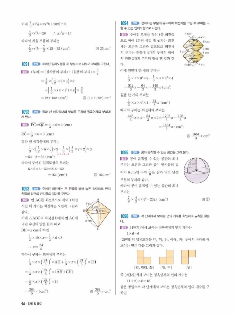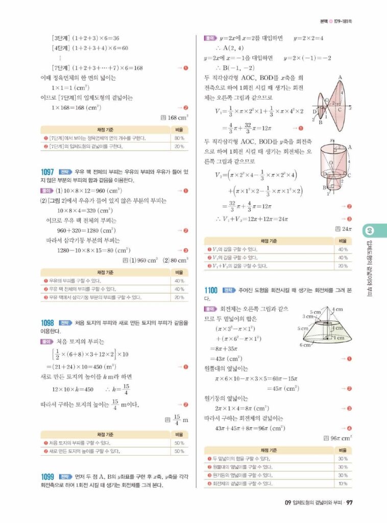 아래는 09단원 입체도형의 겉넓이와 부피 파트의 답지입니다. 페이지 순서대로 이미지를 업로드하며, 클릭하면 더 크게 보실 수 있습니다.
