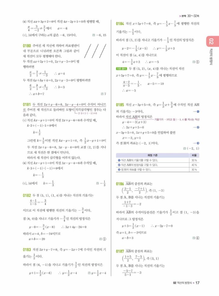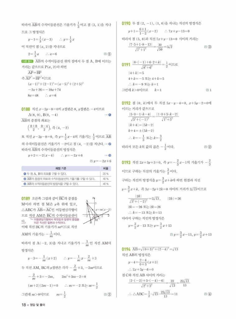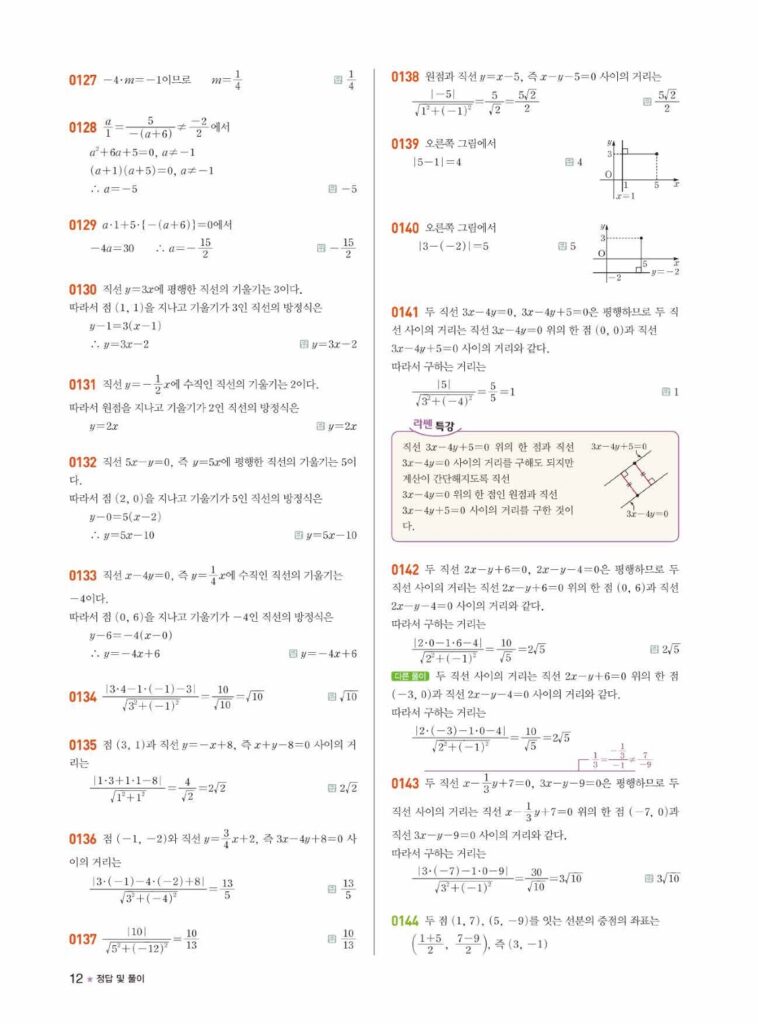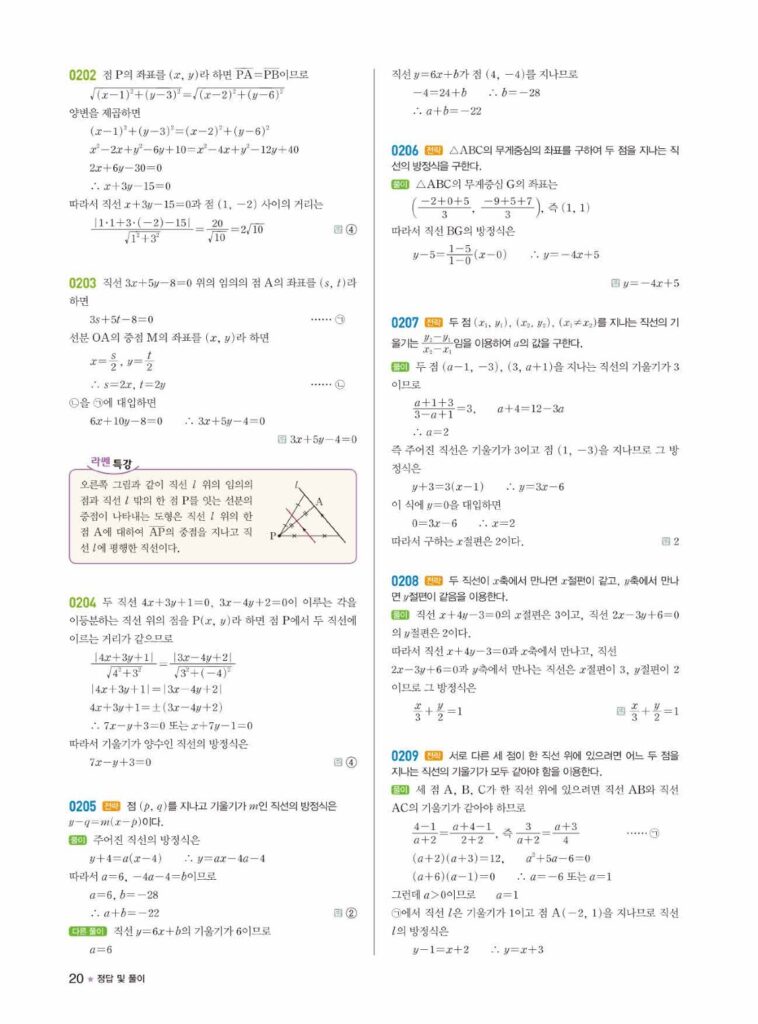 라이트쎈 공통수학2 02단원에서 가장 중요한 부분입니다. ‘평행’과 ‘수직’ 조건은 모르면 문제를 풀 수 없습니다.