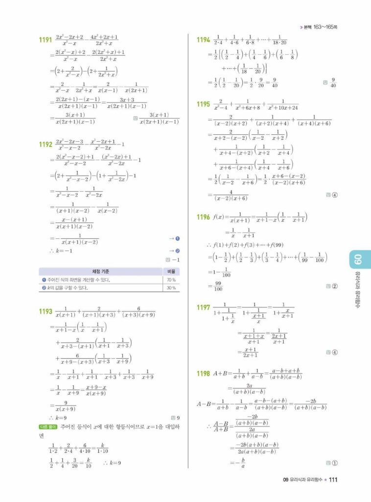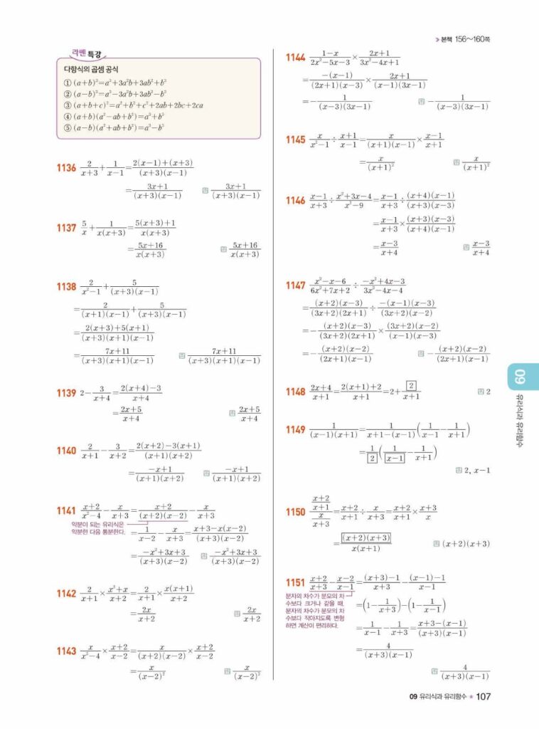 안녕하세요! 📚 라이트쎈 공통수학으로 열공하는 학생 여러분! 08단원 ‘함수’의 기본기를 마치고, 첫 번째 구체적인 함수인 **’09단원 유리식과 유리함수’**입니다.