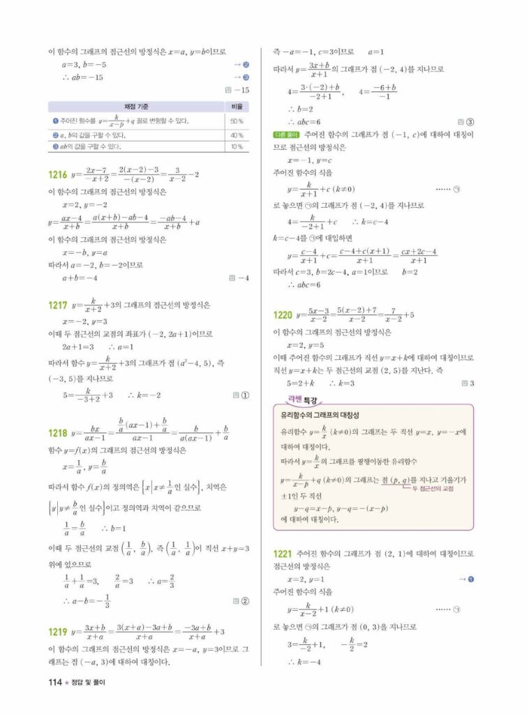 유리함수는 ‘점근선’과 ‘대칭성’이 전부입니다. 라이트쎈 공통수학의 모든 유리함수 문제를 ‘표준형’으로 바꿔 ‘점근선’부터 그리는 연습을 해보세요! 🔥