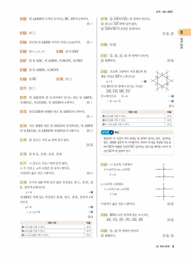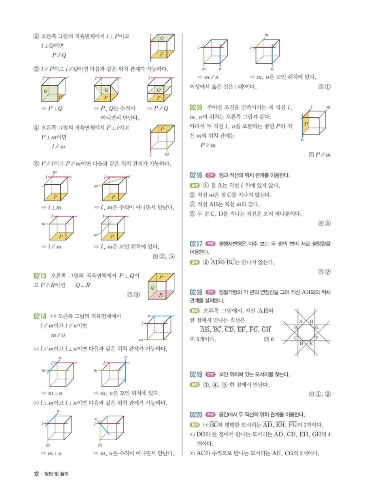 01단원 기본 도형에 이어, ’02단원 위치 관계’는 공간 지각력을 테스트하는 단원입니다. 특히 이 단원의 킬러(Killer) 개념, **’꼬인 위치’** 때문에 많은 학생이 헷갈려 합니다.