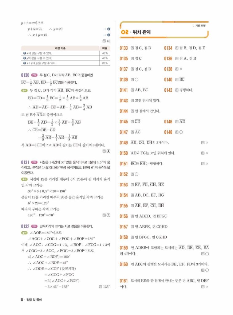 📚 라이트쎈 중1-2 02단원 위치 관계 (핵심 꿀팁 총정리)