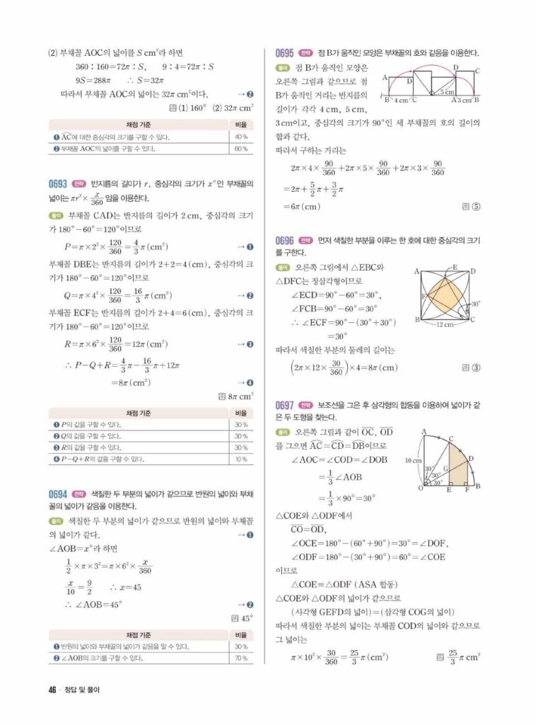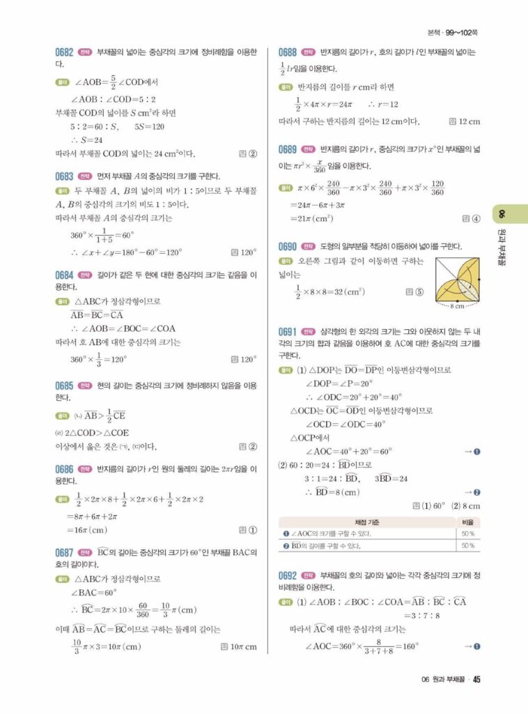 라이트쎈 06단원 B단계 문제 중, ‘현의 길이’ 함정 문제와 ‘$S = \frac{1}{2}rl$’ 공식을 응용하는 복잡한 도형 문제 풀이 동영상을 곧 업데이트할게요!