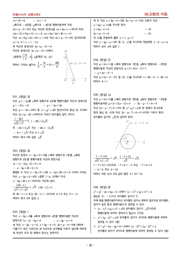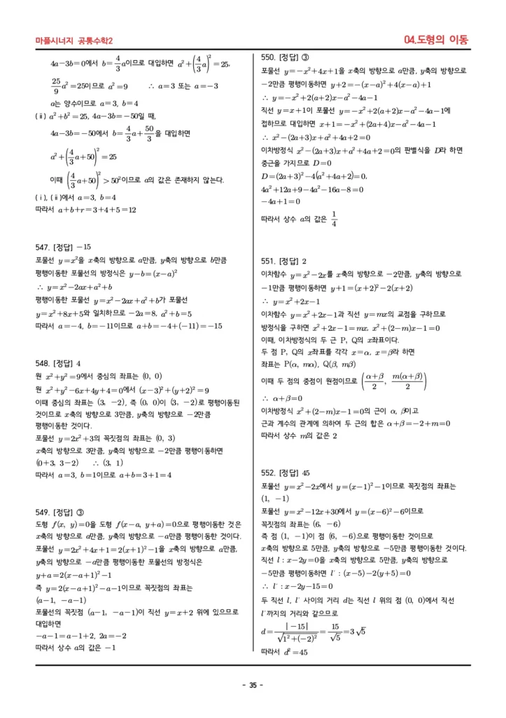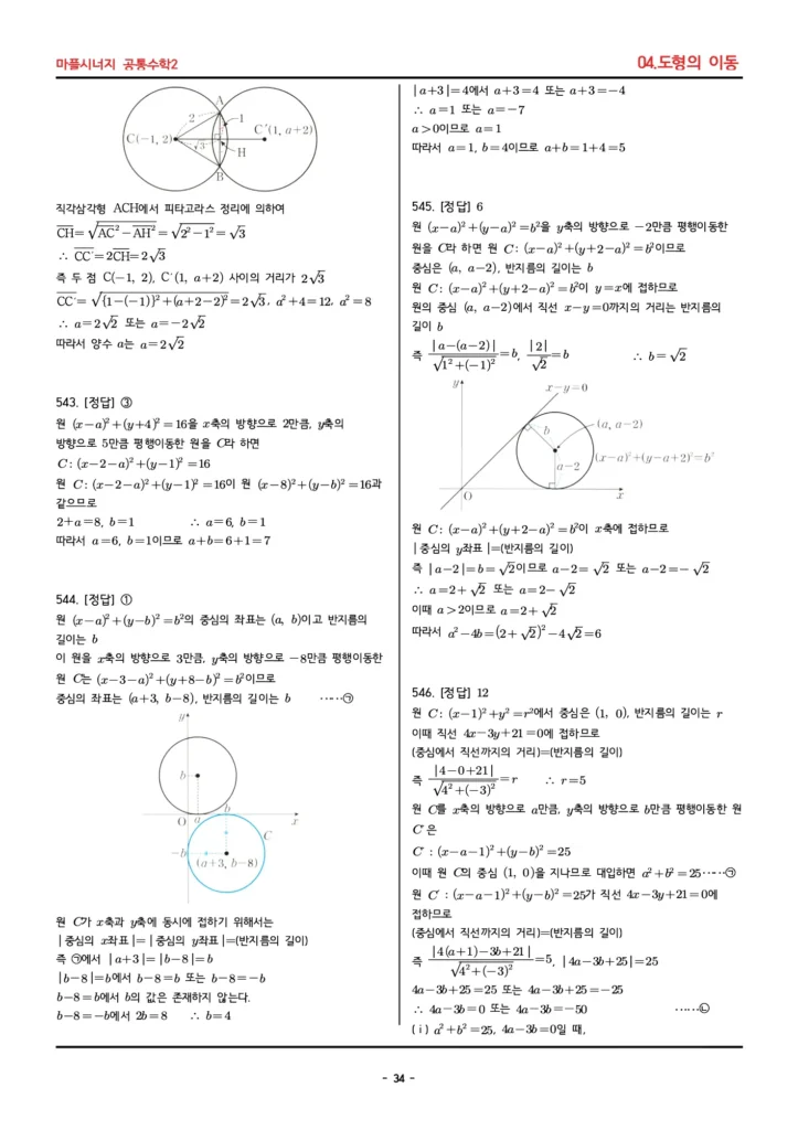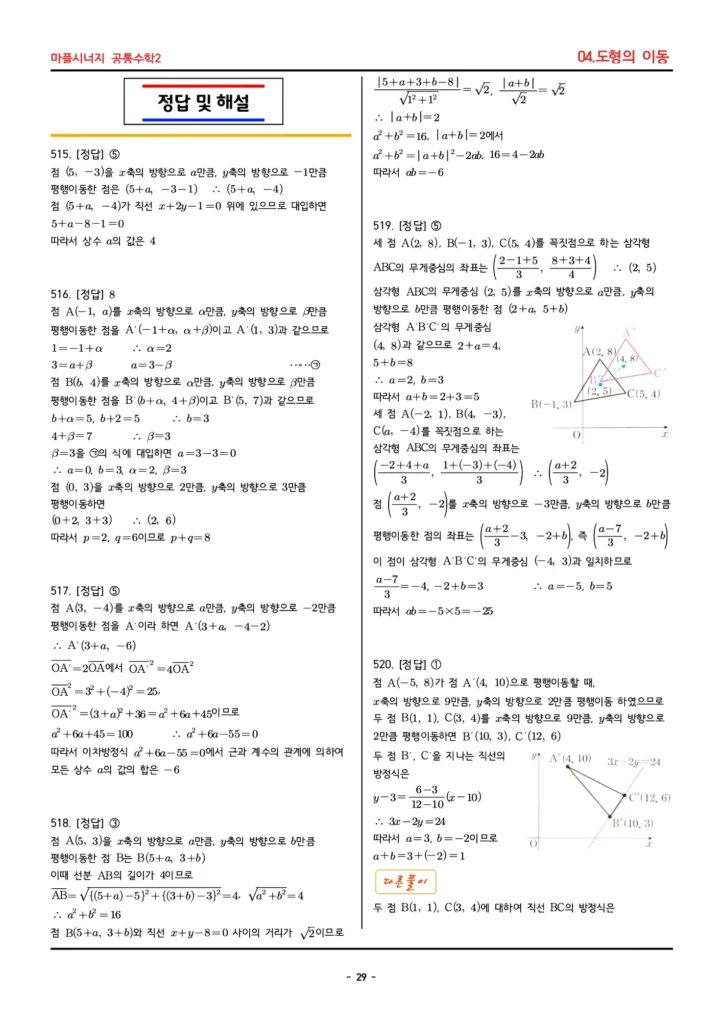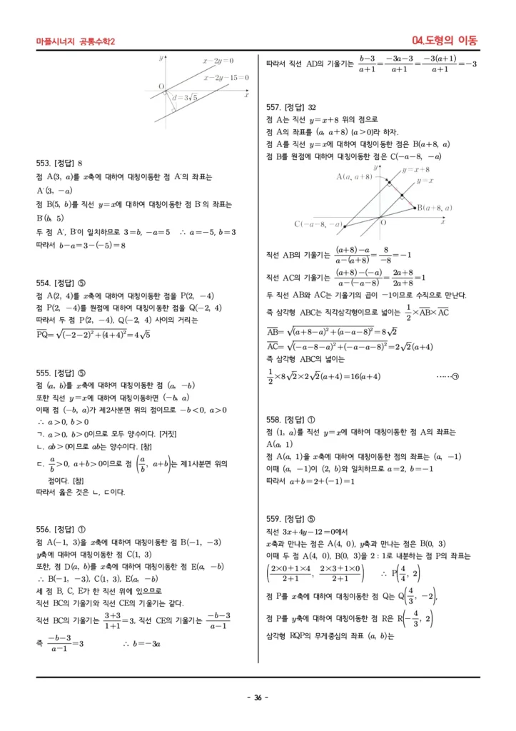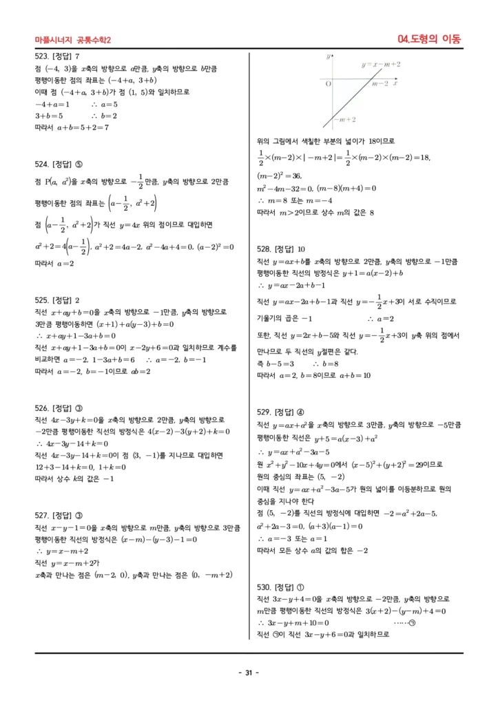 📚 마플시너지 공통수학2 (04. 도형의 이동) 답지 PDF