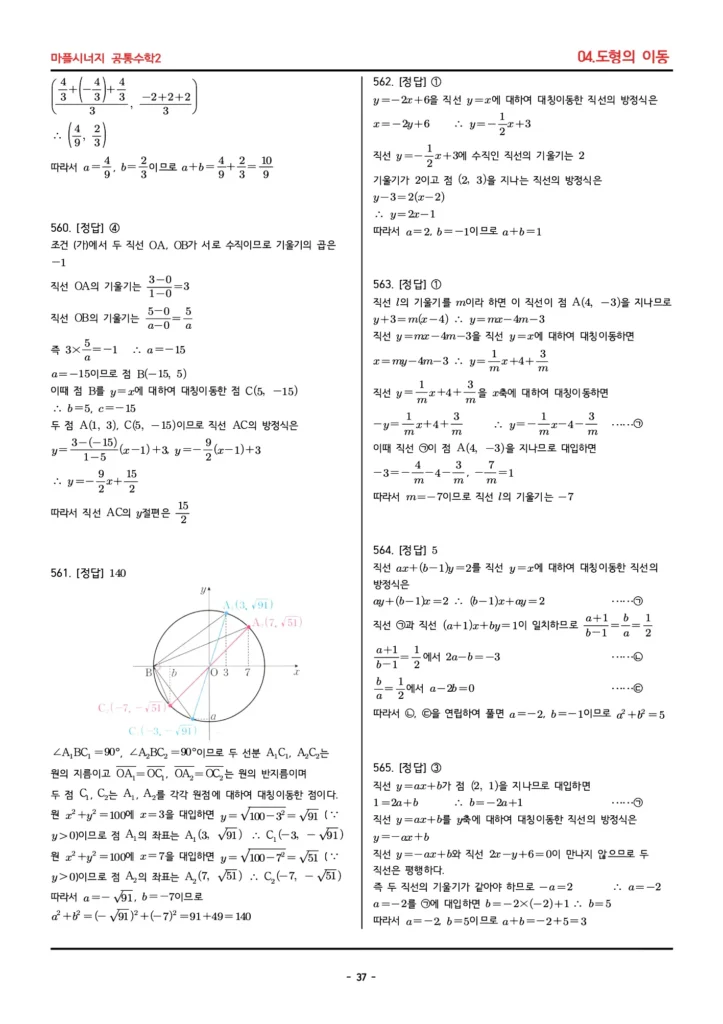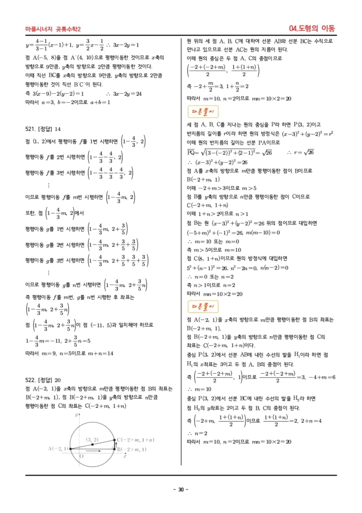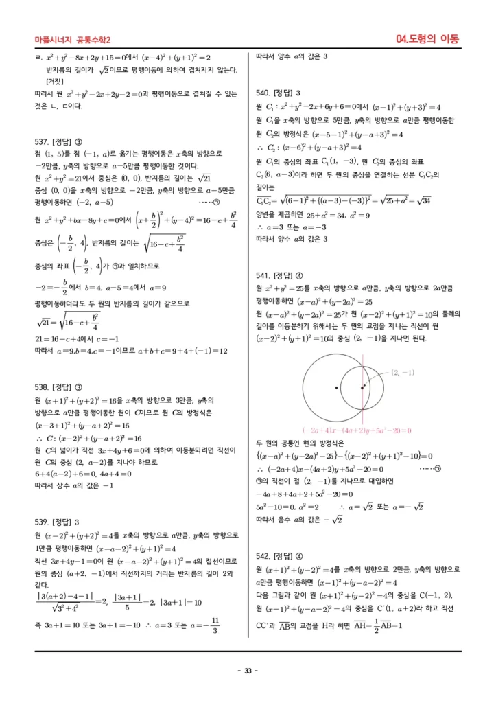 마플시너지 공통수학2 답지 (04. 도형의 이동)