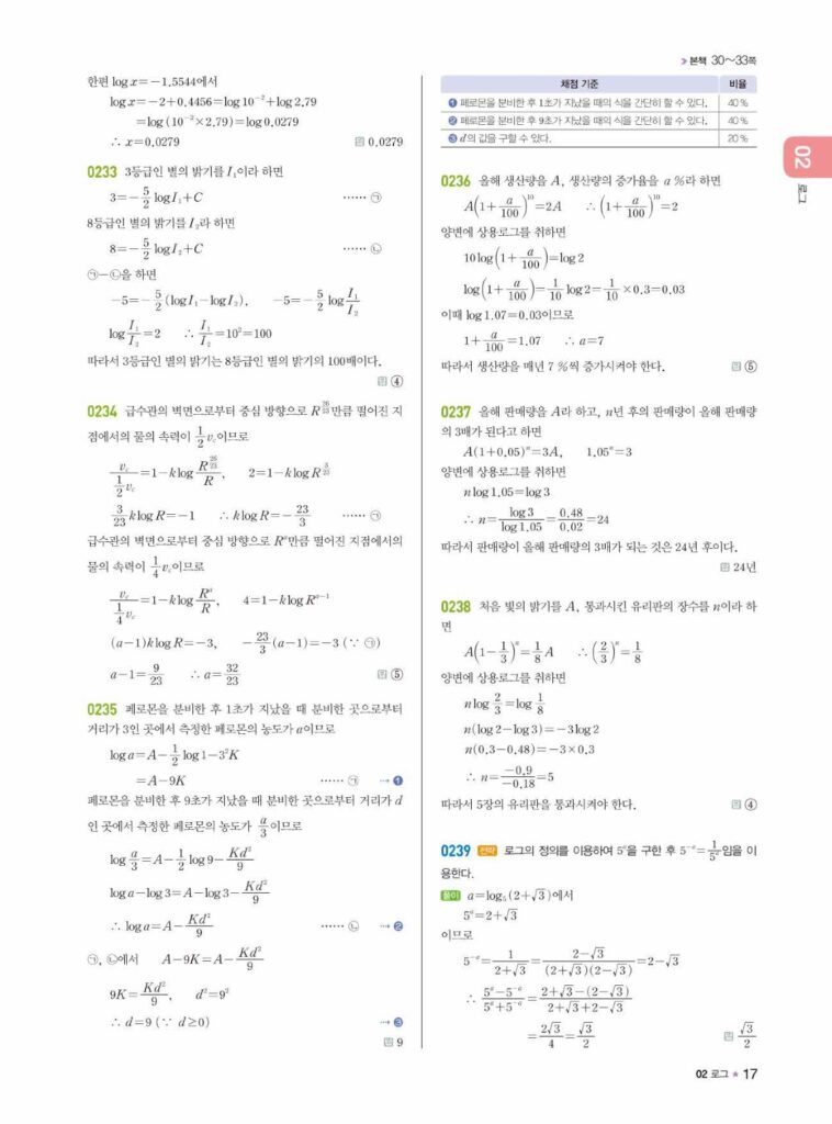 라이트쎈 대수 02.로그 답지