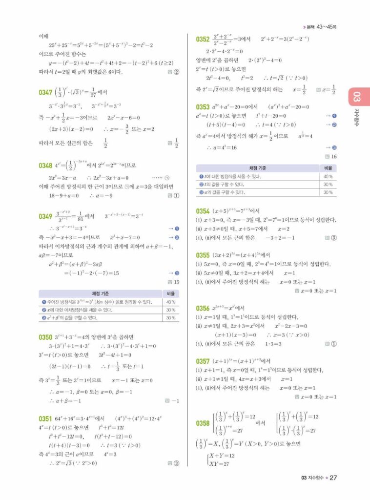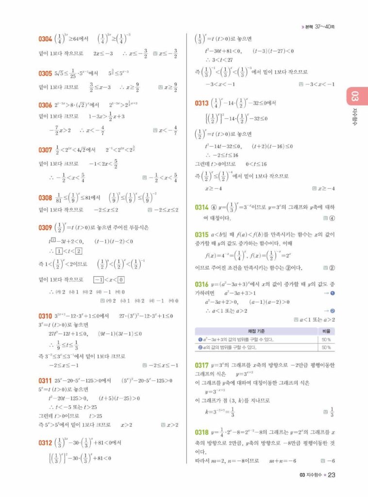 안녕하세요. 라이트쎈 대수(Algebra) 03단원 지수함수 정답 및 해설입니다.