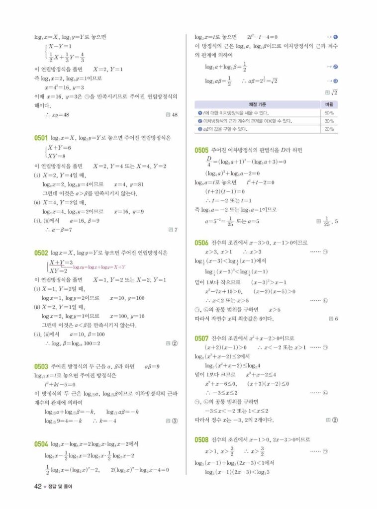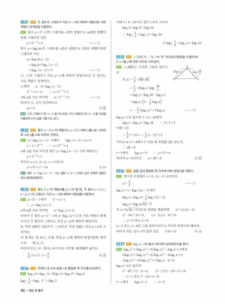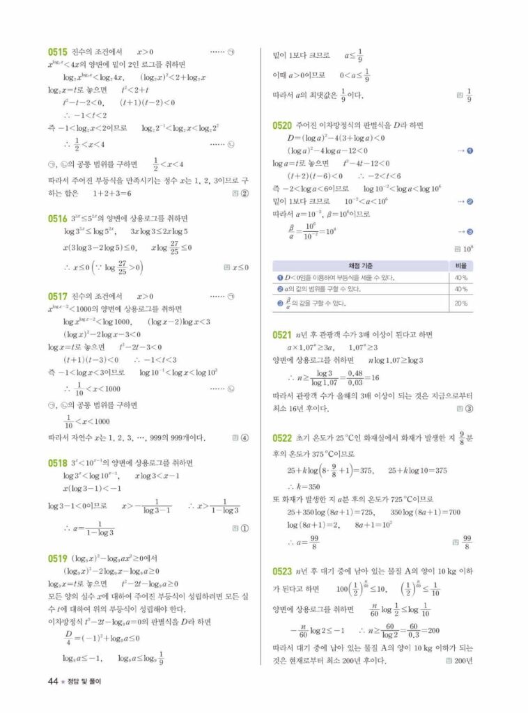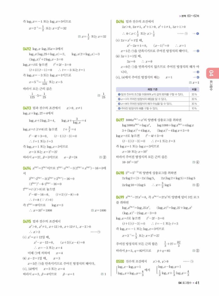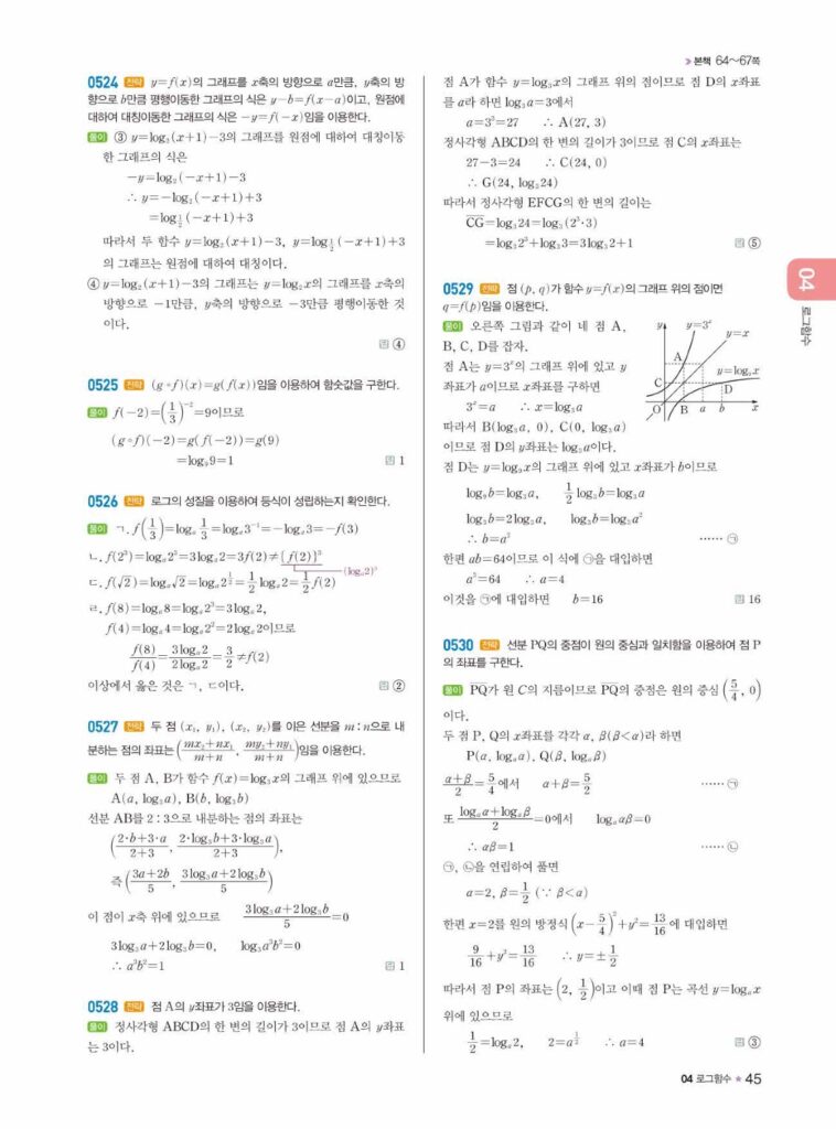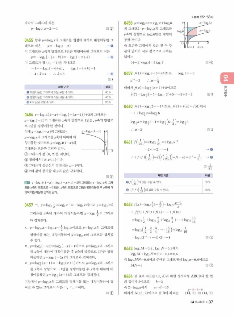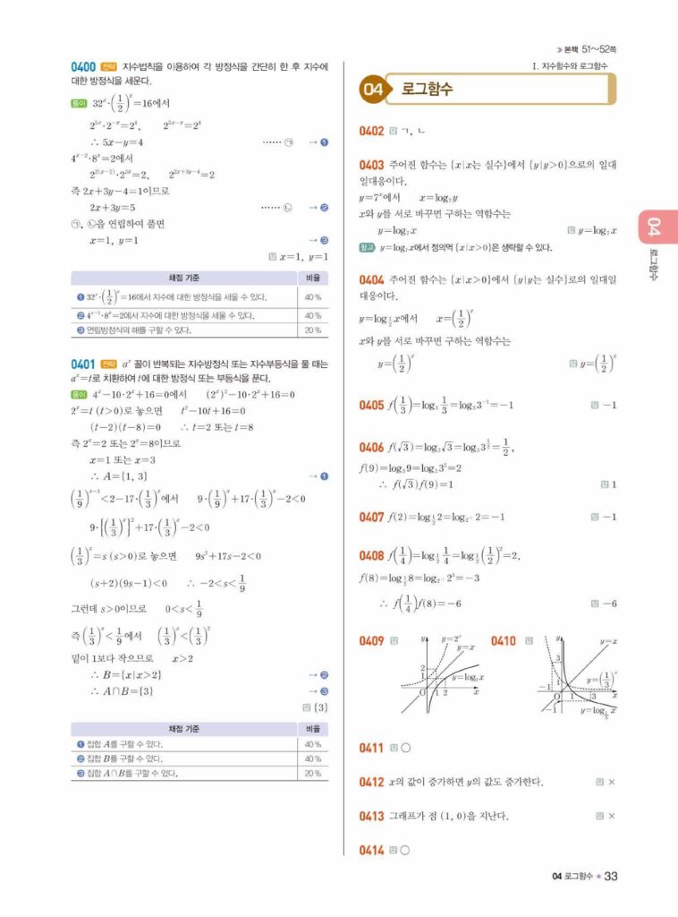 안녕하세요. 라이트쎈 대수(Algebra) 04단원 로그함수 정답 및 해설입니다.