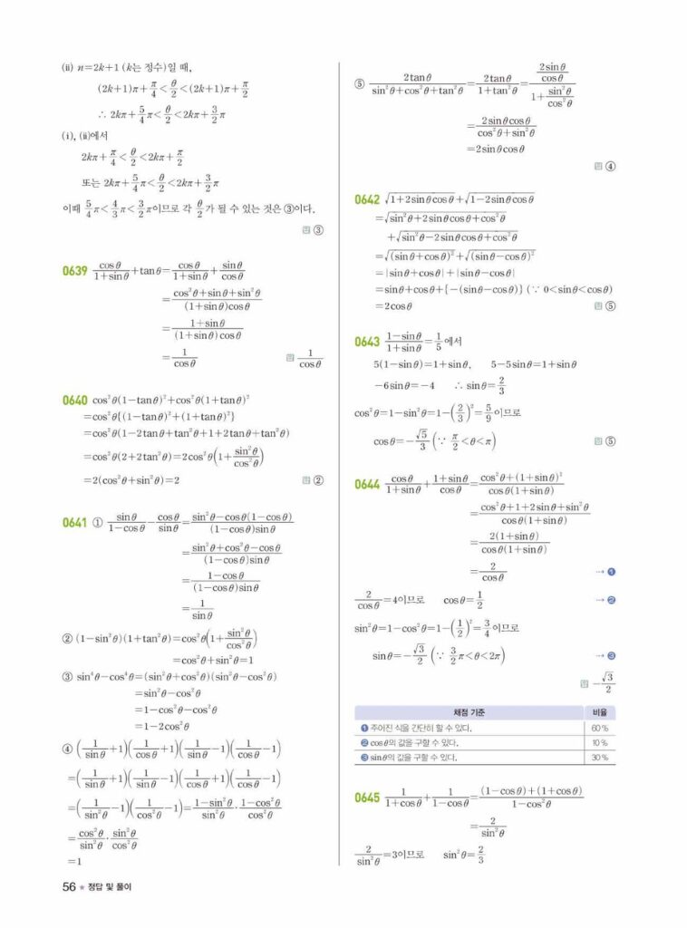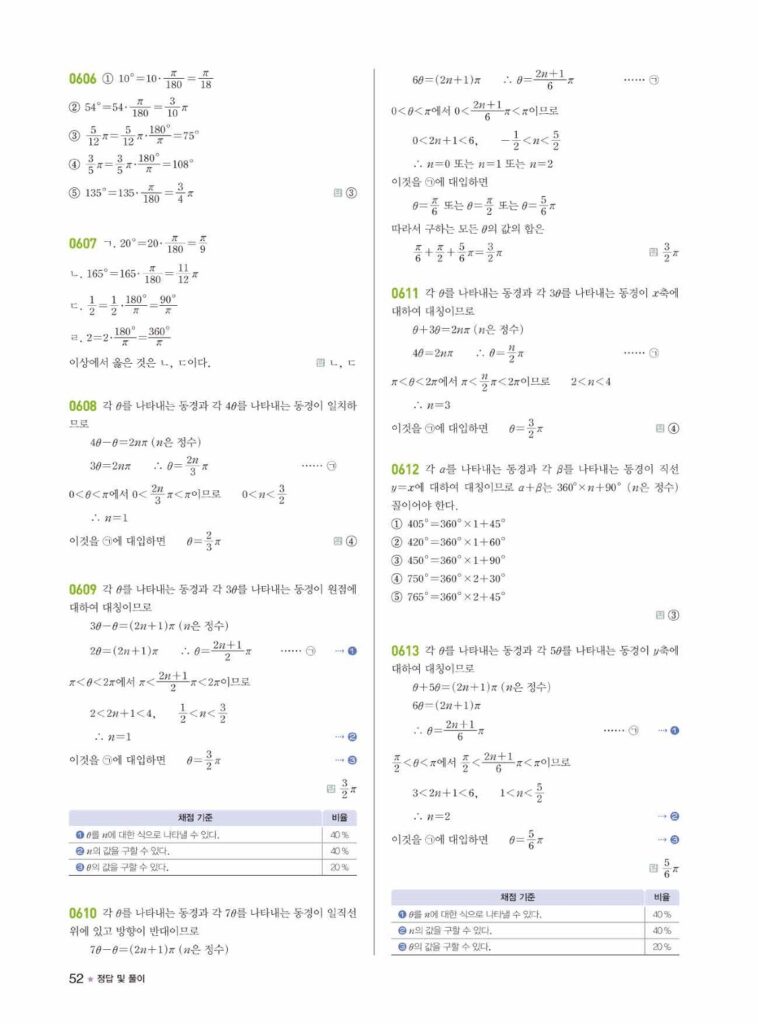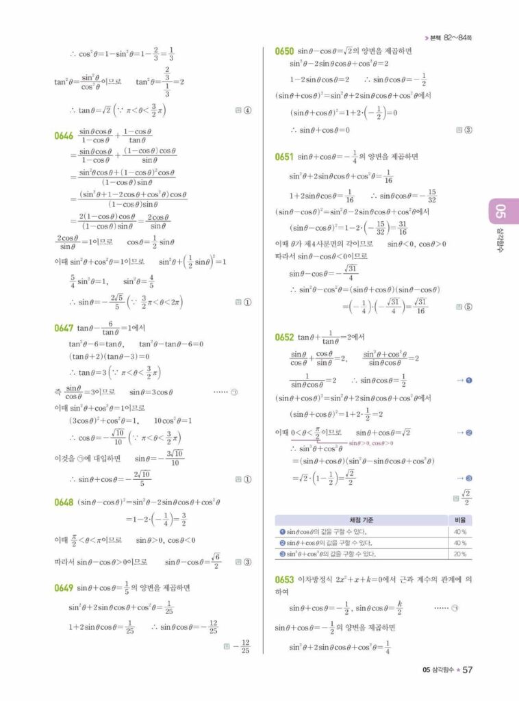 라이트쎈 대수 05.삼각함수 답지