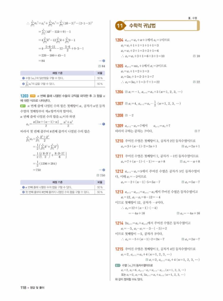 이웃하는 항들의 관계식인 점화식을 통해 수열을 파악하고, 수학적 귀납법을 이용해 명제를 증명하는 논리적 과정을 연습합니다. 빈칸 채우기 문제가 자주 출제되니 앞뒤 맥락을 파악하는 훈련이 필요합니다.