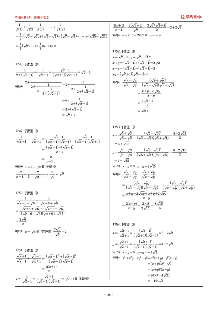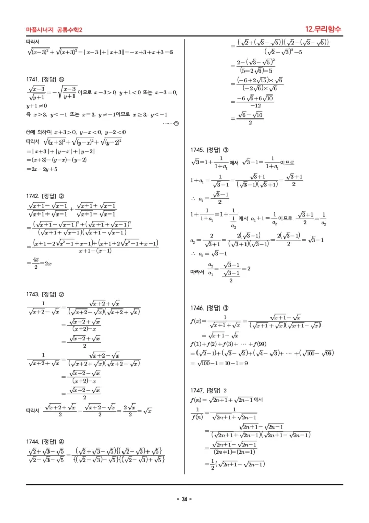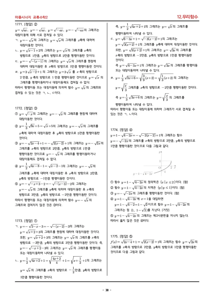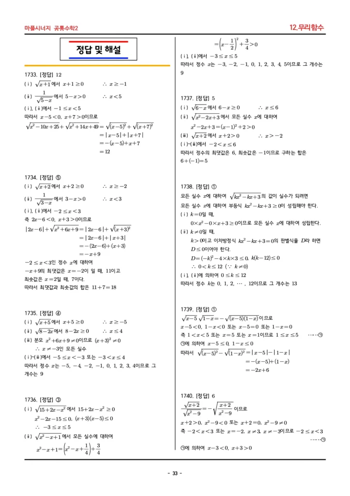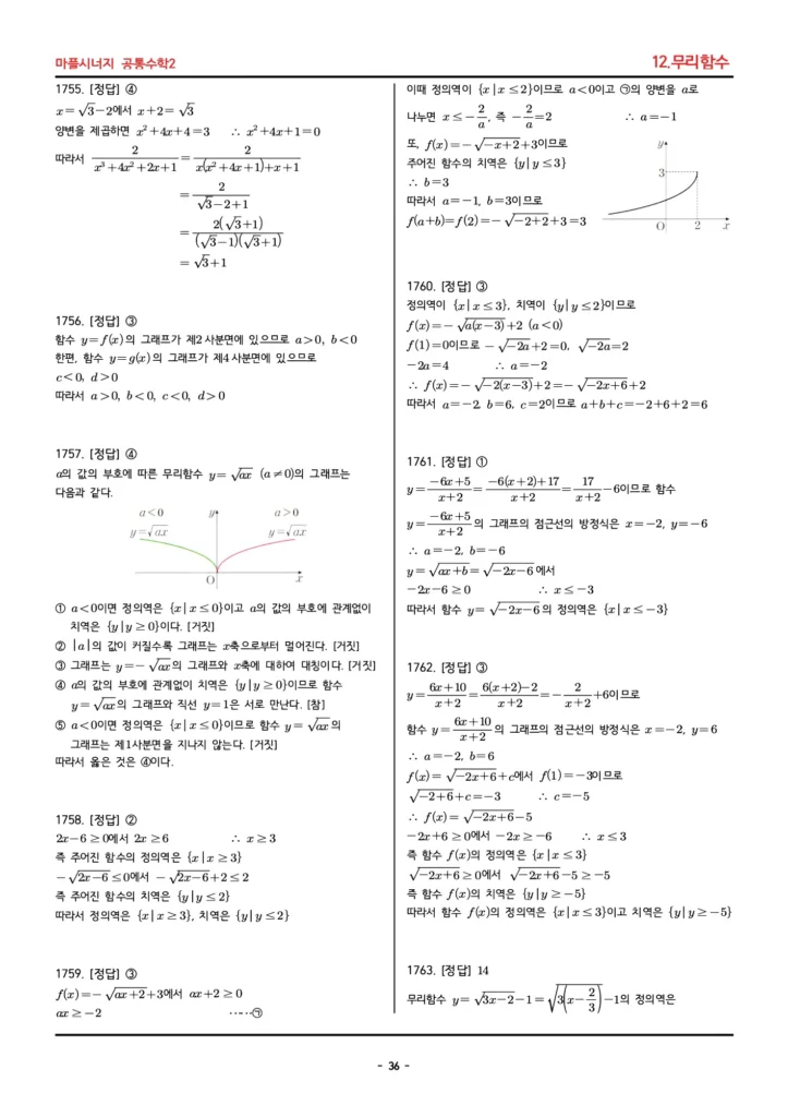 마플시너지 공통수학2 답지 (12단원. 무리함수) 정답 및 해설