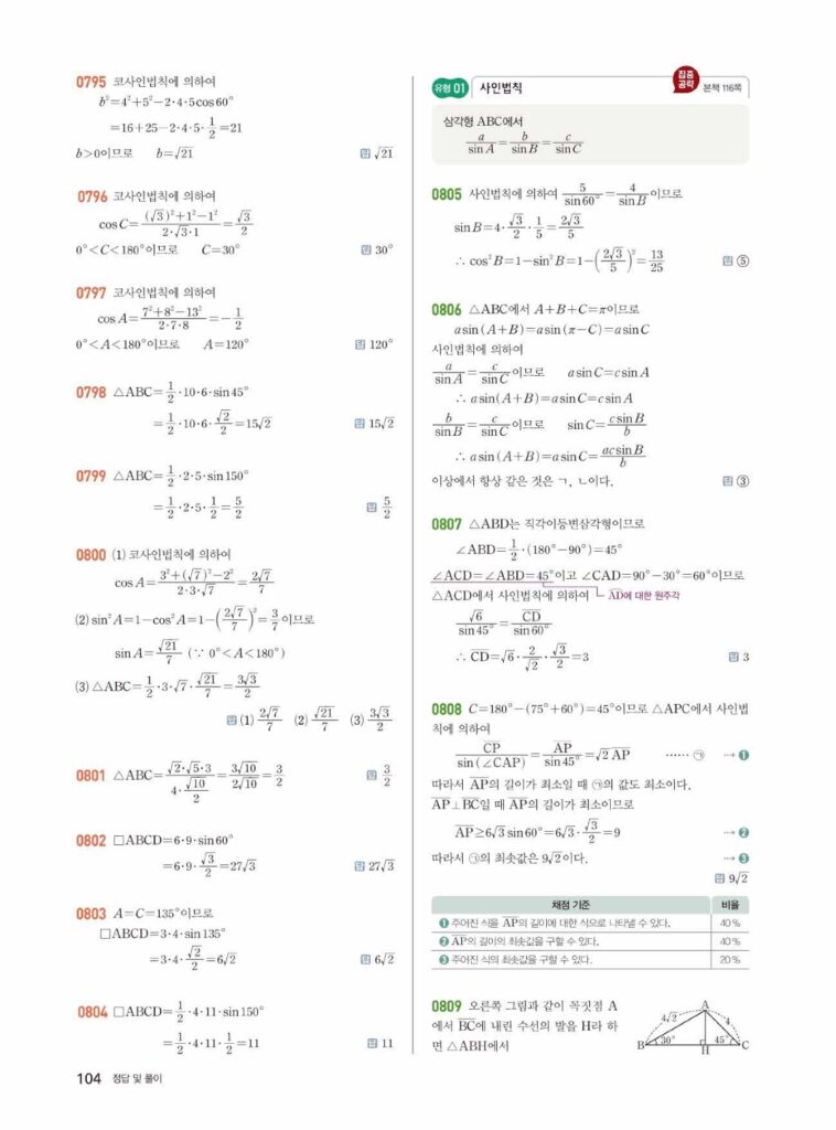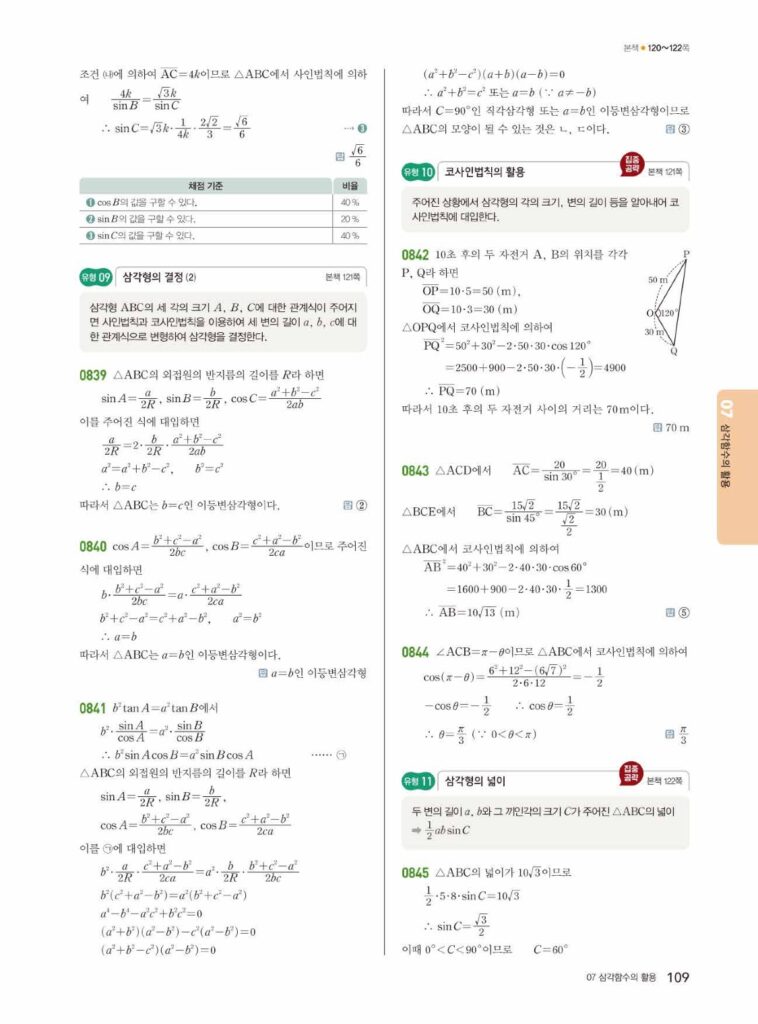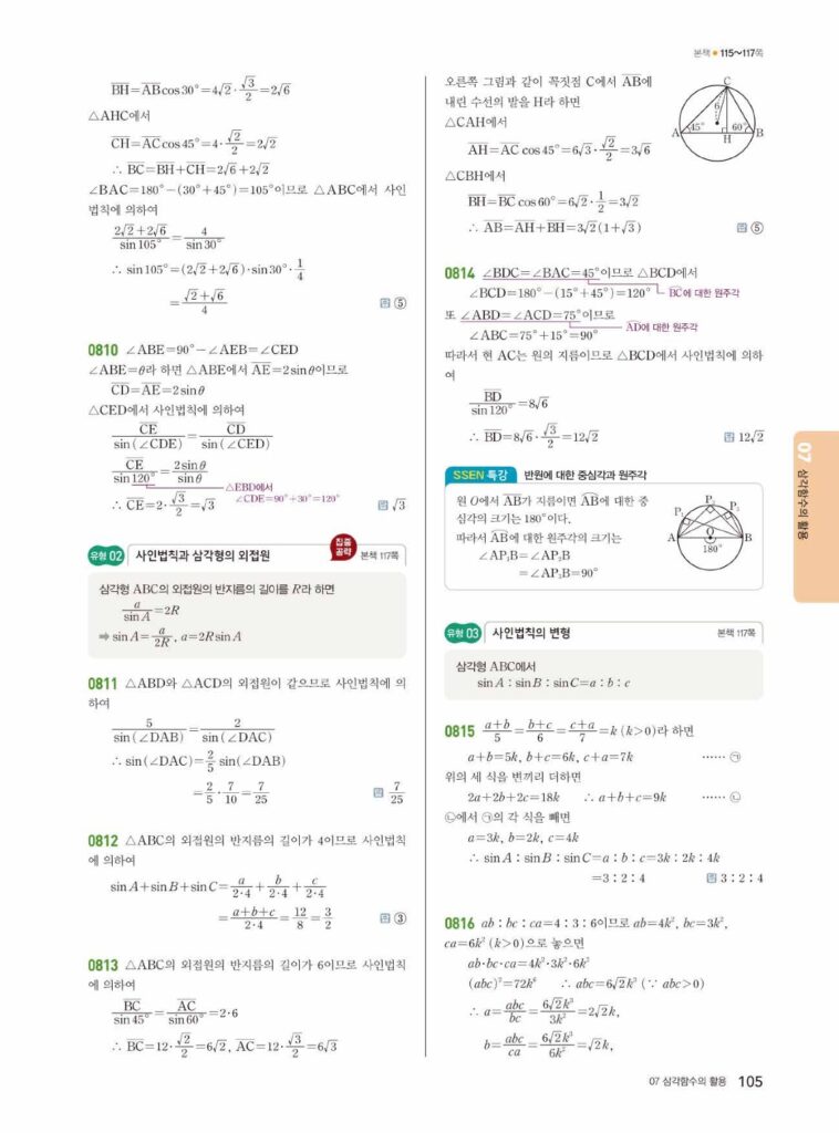 안녕하세요. 쎈 대수(Algebra) 07단원 삼각함수의 활용 정답 및 해설입니다.