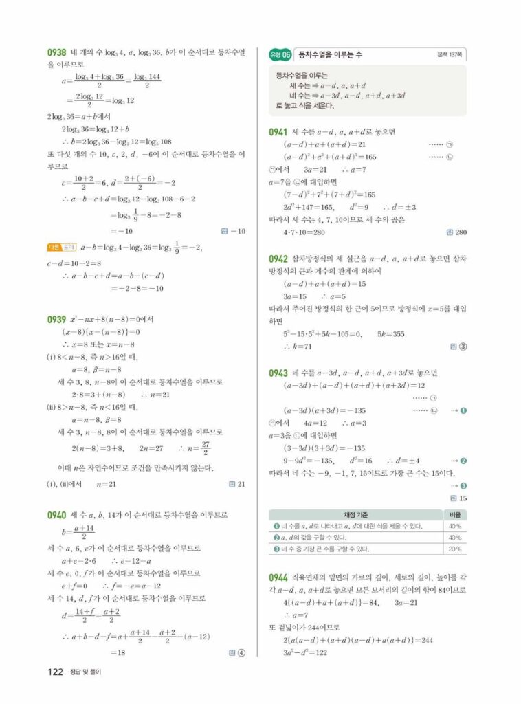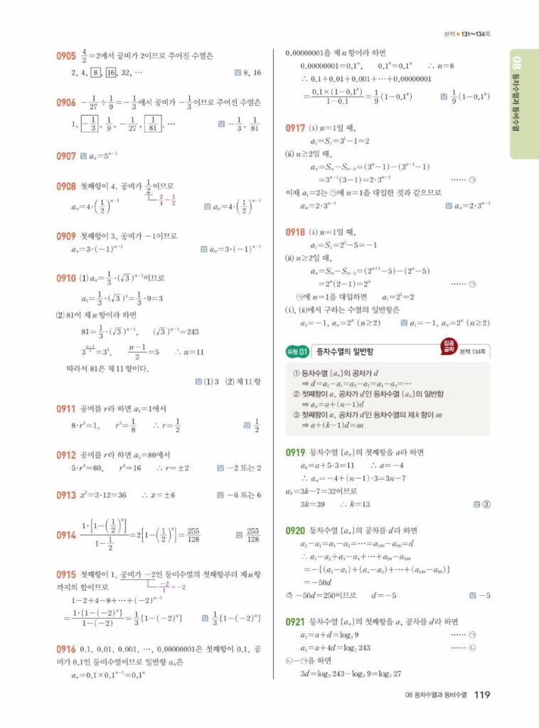 안녕하세요. 쎈 대수(Algebra) 08단원 등차수열과 등비수열 정답 및 해설입니다.