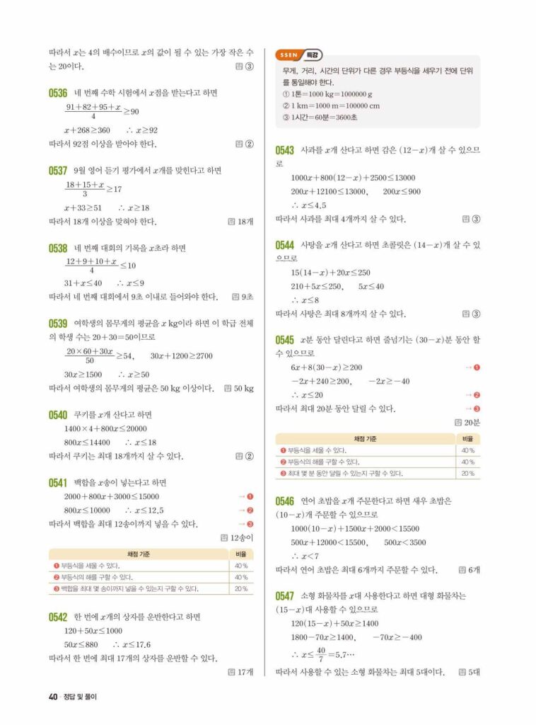 λ¨μν λ΅λ§ λ² λΌλ©΄ μνμμ μ λ ν μ μμ΅λλ€. βμ μ΄λβ, βμ΄μβ, βμ΄νβ κ°μ ννμ΄ λ±νΈλ₯Ό ν¬ν¨νλμ§ νμΈνκ³ , κ±°μμμ λλ 곡μμ νμ©ν΄ λ―Έμ§μ $x$μ λν λΆλ±μμ μΈμ°λ μ°μ΅μ ν΄μΌ ν©λλ€.