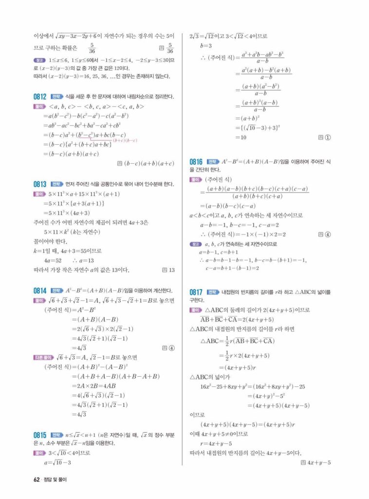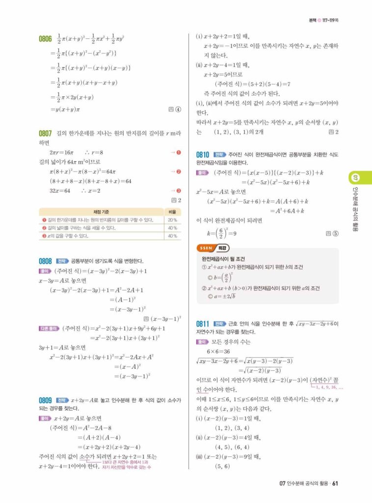 쎈중3-1 07 인수분해공식의 활용