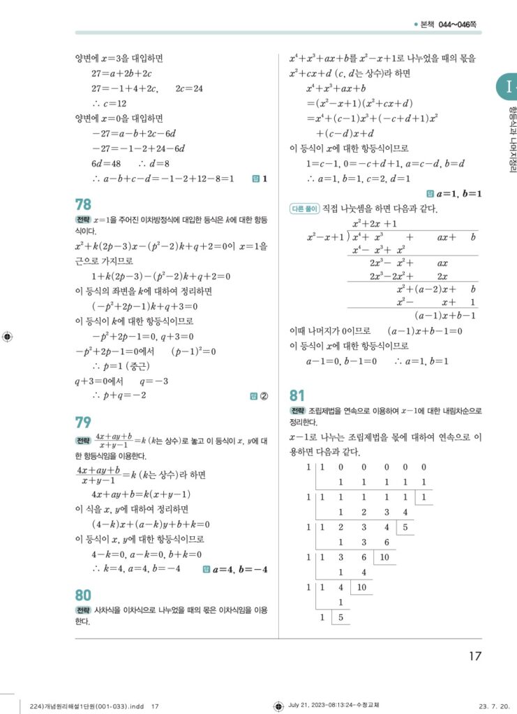 μλ νμΈμ. κ³ λ± μνμ ν΅μ¬, **κ°λ μ리 곡ν΅μν1** **02λ¨μ νλ±μκ³Ό λλ¨Έμ§μ 리** μ λ΅ λ° ν΄μ€μ λλ€.