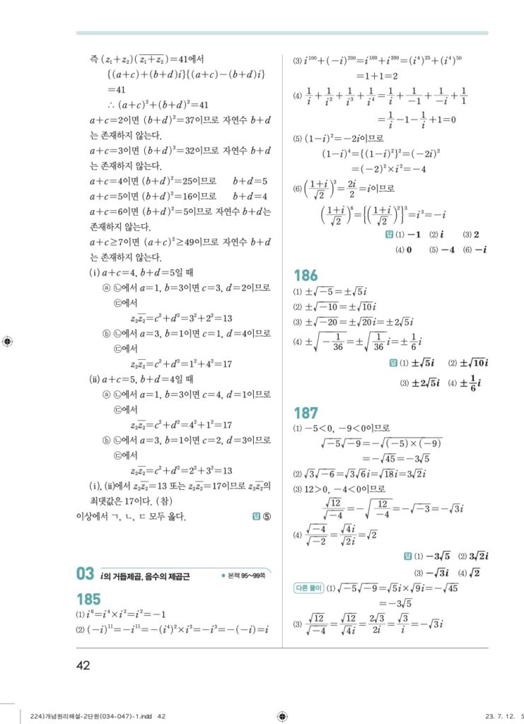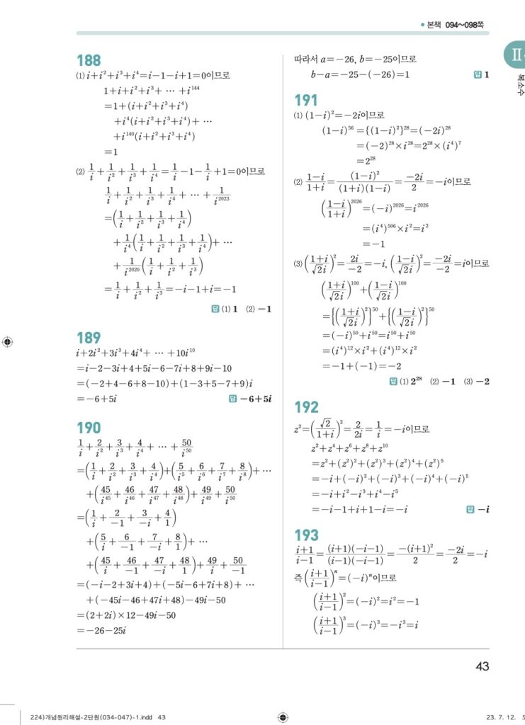 볡μμ $a+bi$λ μ€μλΆ $a$μ νμλΆ $b$λ‘ μ΄λ£¨μ΄μ Έ μμΌλ©°, **νμ λ¨μ $i$ ($i^2=-1$)**μ μ μλ₯Ό μλ²½ν μ΄ν΄ν΄μΌ ν©λλ€. νΉν $i$μ κ±°λμ κ³±μ **4κ°λ₯Ό μ£ΌκΈ°λ‘ λ°λ³΅**λλ€λ μ μ μ΄μ©ν κ³μ° λ¬Έμ κ° λ§μ΄ μΆμ λ©λλ€.