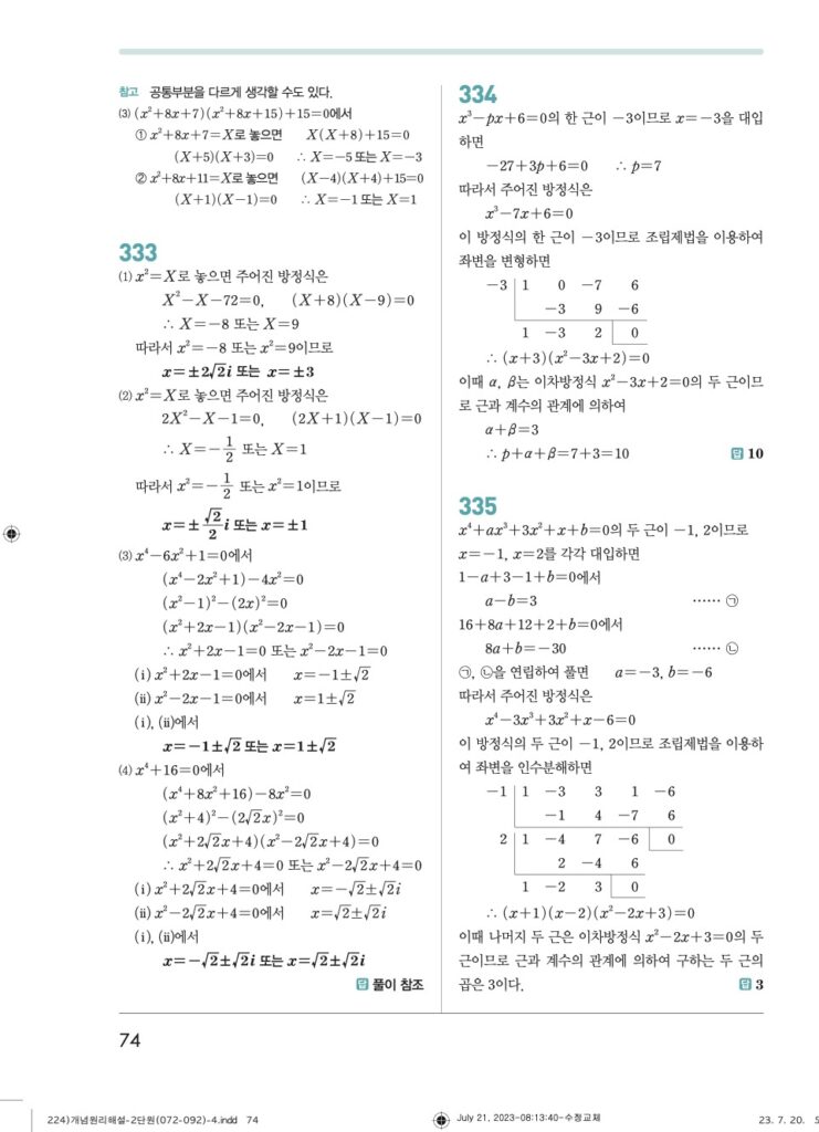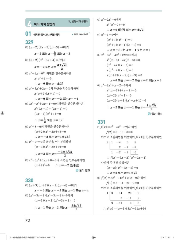 ๊ฐ๋ ์๋ฆฌ 07๋จ์ **3์ฐจ/4์ฐจ ๋ฐฉ์ ์, ์ฐ๋ฆฝ์ด์ฐจ๋ฐฉ์ ์** ๋ฌธ์ ์ ์ ๋ต ์ด๋ฏธ์ง์ ๋๋ค. ์ด๋ฏธ์ง๋ฅผ ํด๋ฆญ(ํฐ์น)ํ์๋ฉด ํ๋๋ฉ๋๋ค.