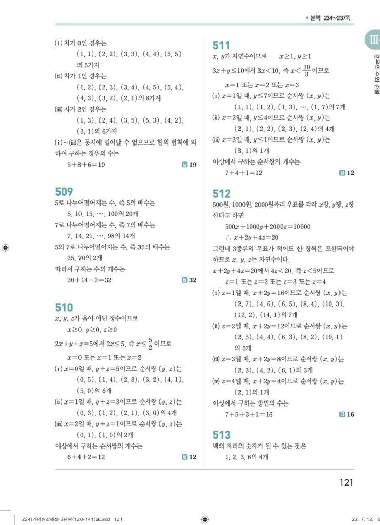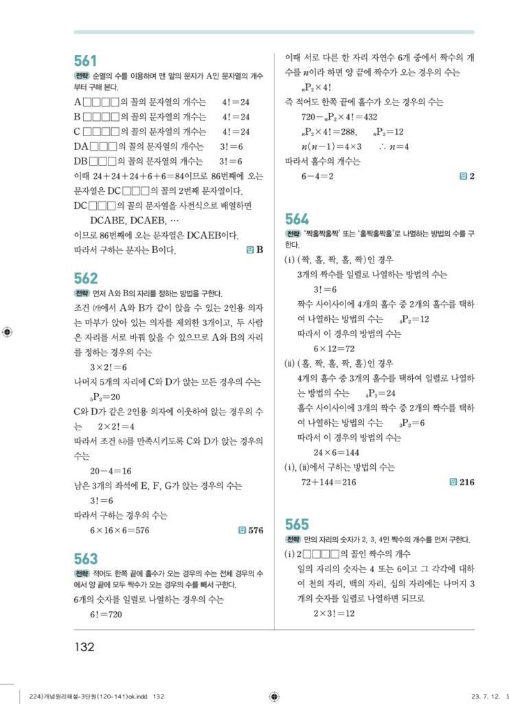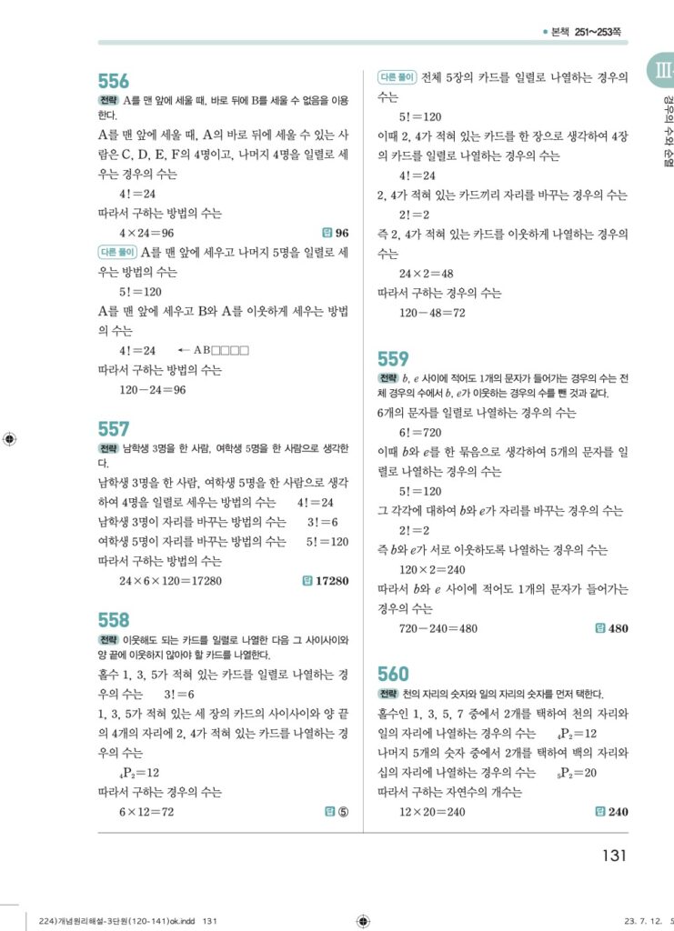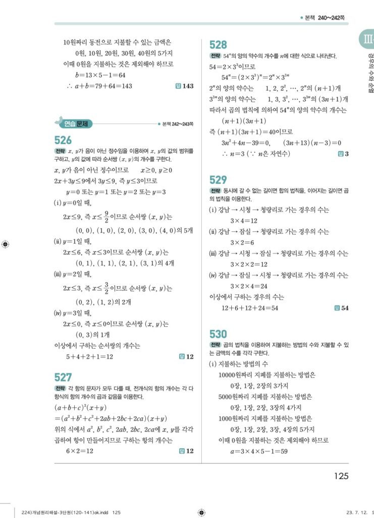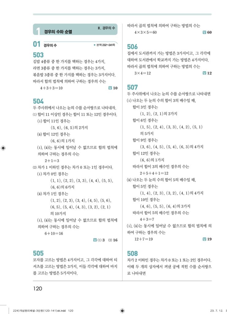 κ°λ μ리 09λ¨μ **ν©μ λ²μΉ, κ³±μ λ²μΉ, μμ΄($n P r$)** λ¬Έμ μ μ λ΅ μ΄λ―Έμ§μ λλ€. μ΄λ―Έμ§λ₯Ό ν΄λ¦(ν°μΉ)νμλ©΄ νλλ©λλ€.