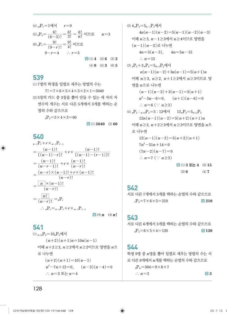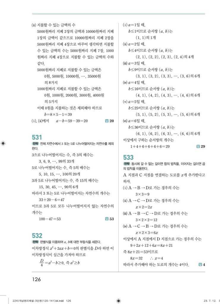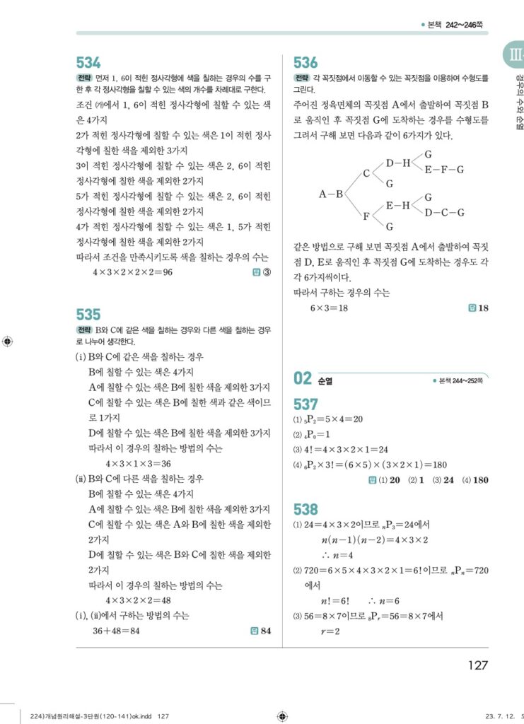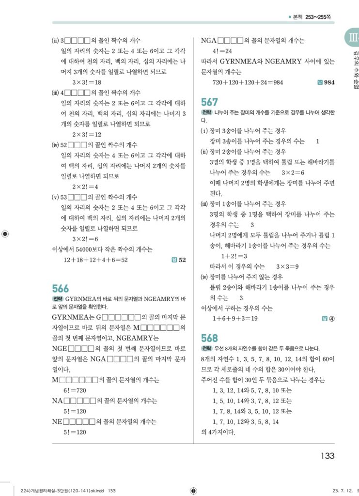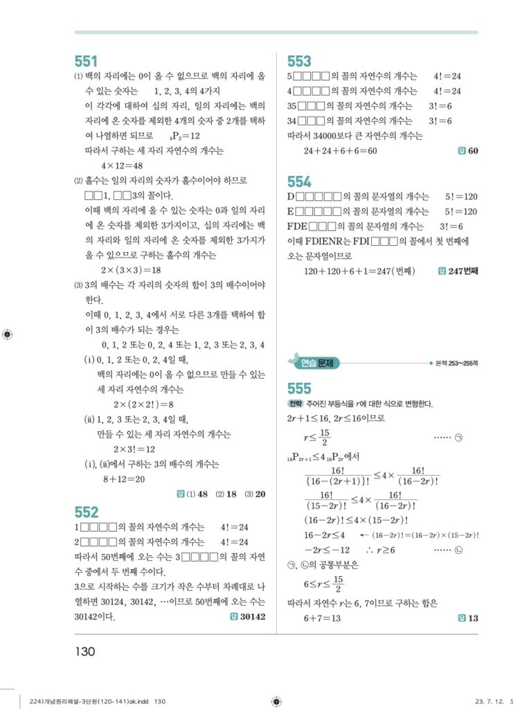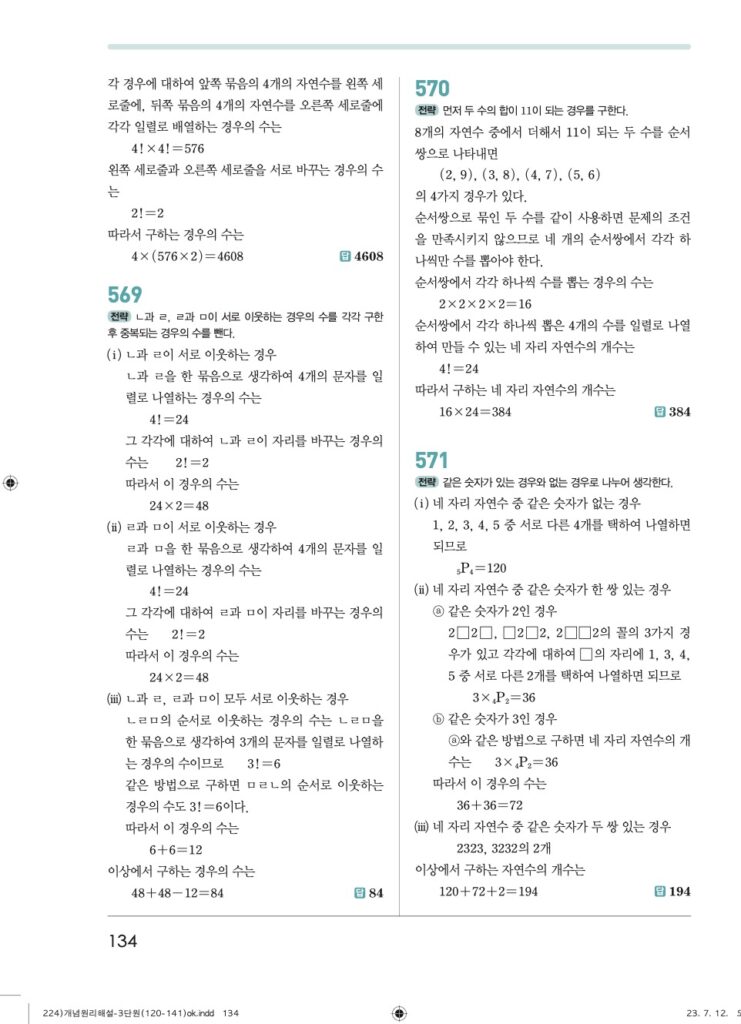 κ°λ μ리 09λ¨μ **ν©μ λ²μΉ, κ³±μ λ²μΉ, μμ΄($n P r$)** λ¬Έμ μ μ λ΅ μ΄λ―Έμ§μ λλ€. μ΄λ―Έμ§λ₯Ό ν΄λ¦(ν°μΉ)νμλ©΄ νλλ©λλ€.