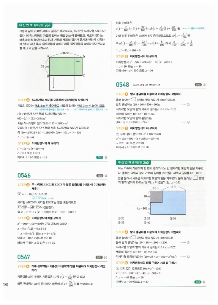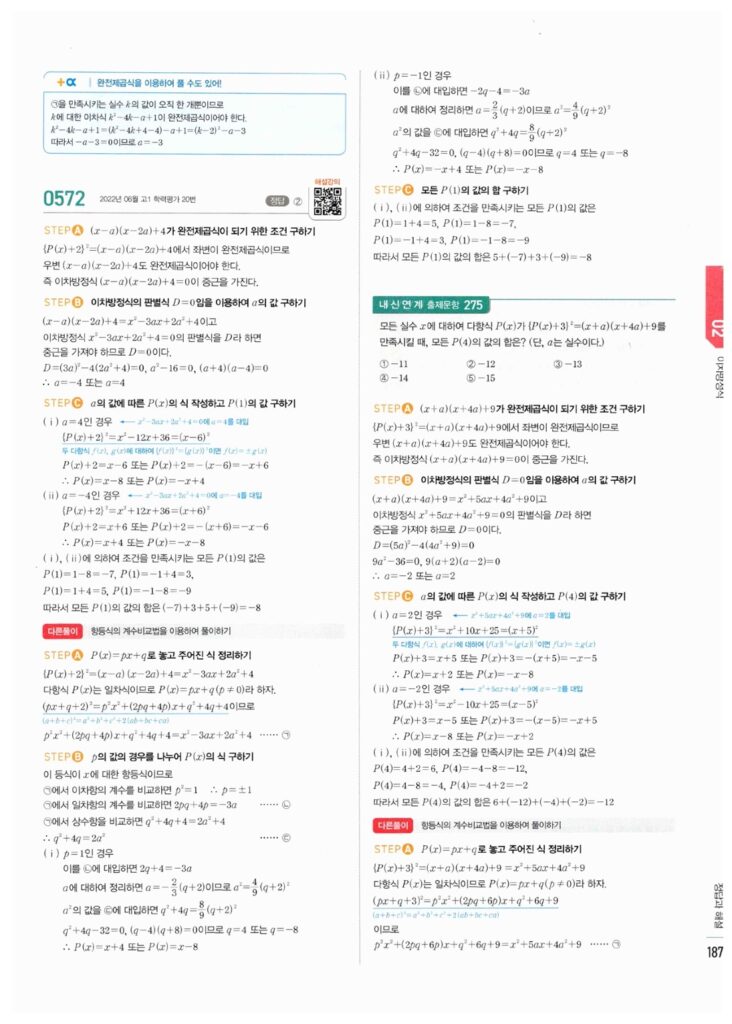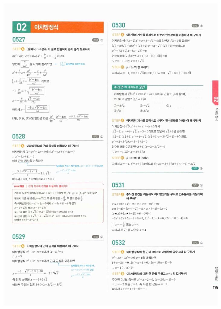 📖 이차방정식 해법 정답 및 해설