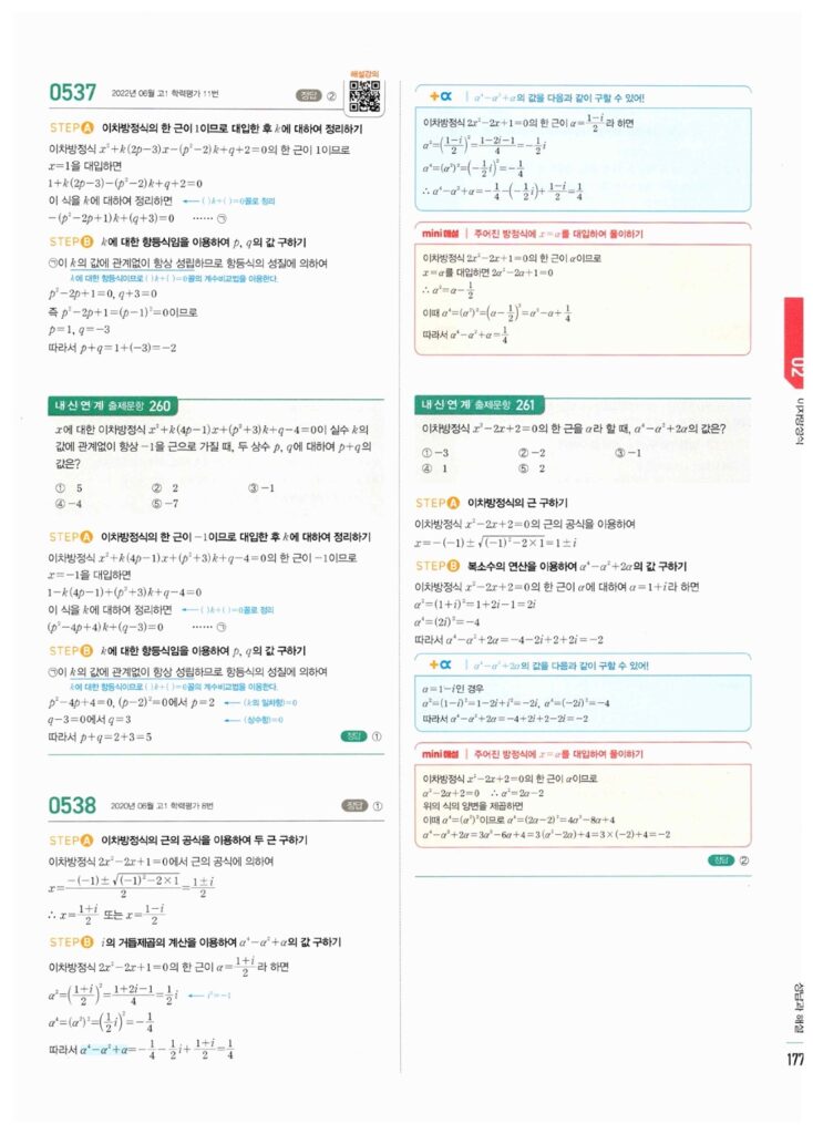 안녕하세요. **마플시너지 공통수학1** **2-2 이차방정식** 첫 번째 파트(1/3) 정답 및 해설입니다.
