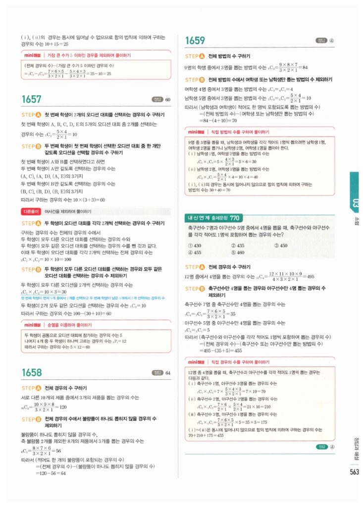 안녕하세요. **마플시너지 공통수학1** **3-3 조합** 첫 번째 파트(1/2) 정답 및 해설입니다.