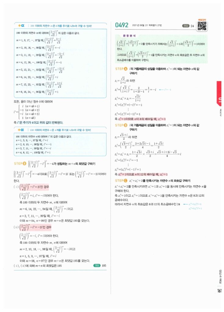 복소수의 정의, $i$의 주기성, 복소수가 서로 같을 조건 문제의 정답 이미지입니다. 이미지를 클릭(터치)하시면 확대됩니다.