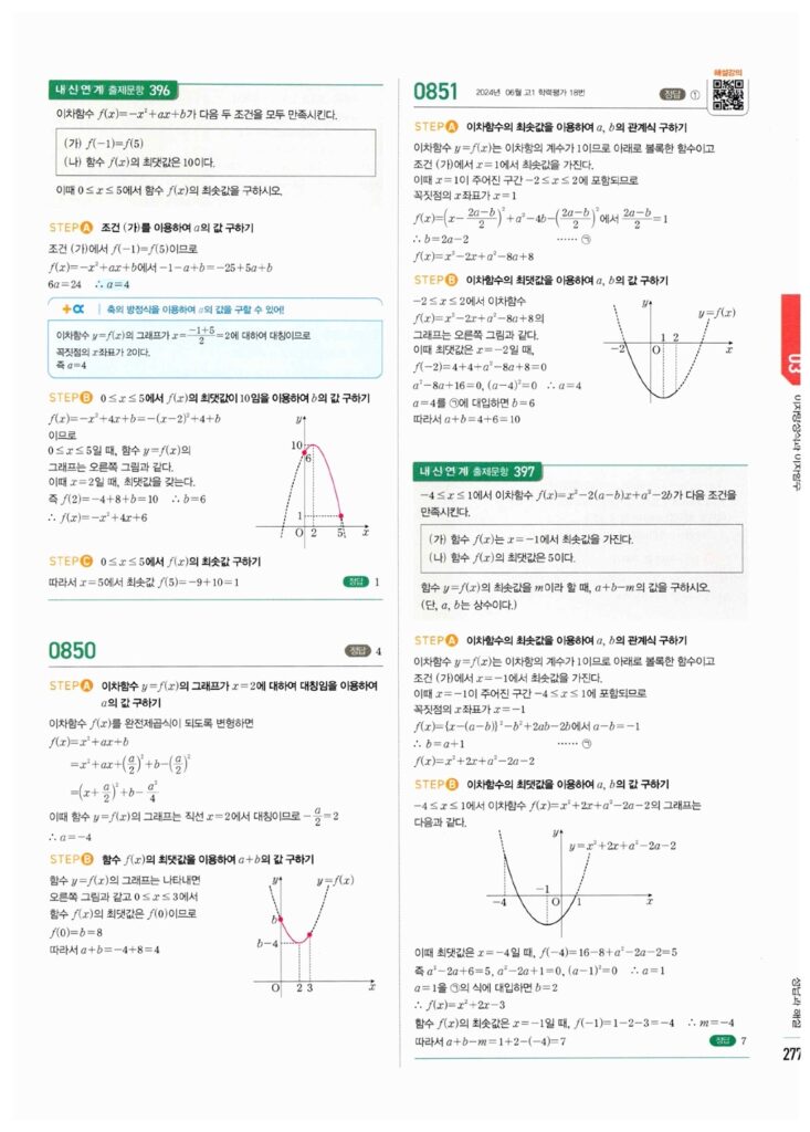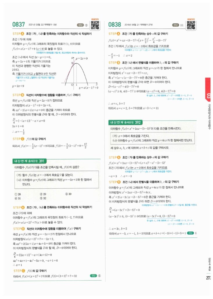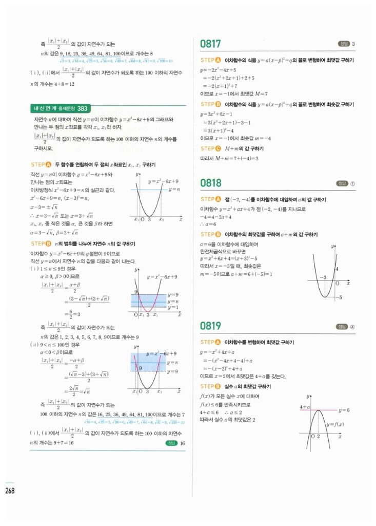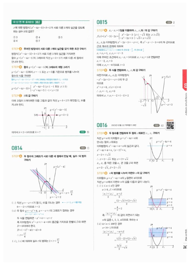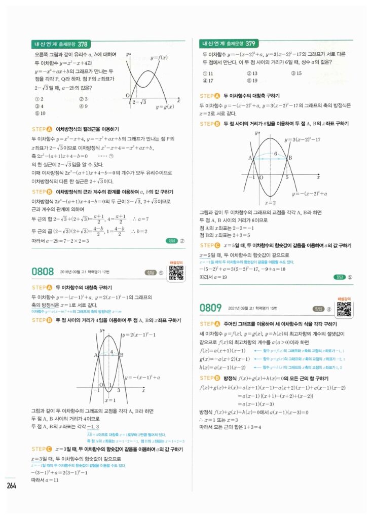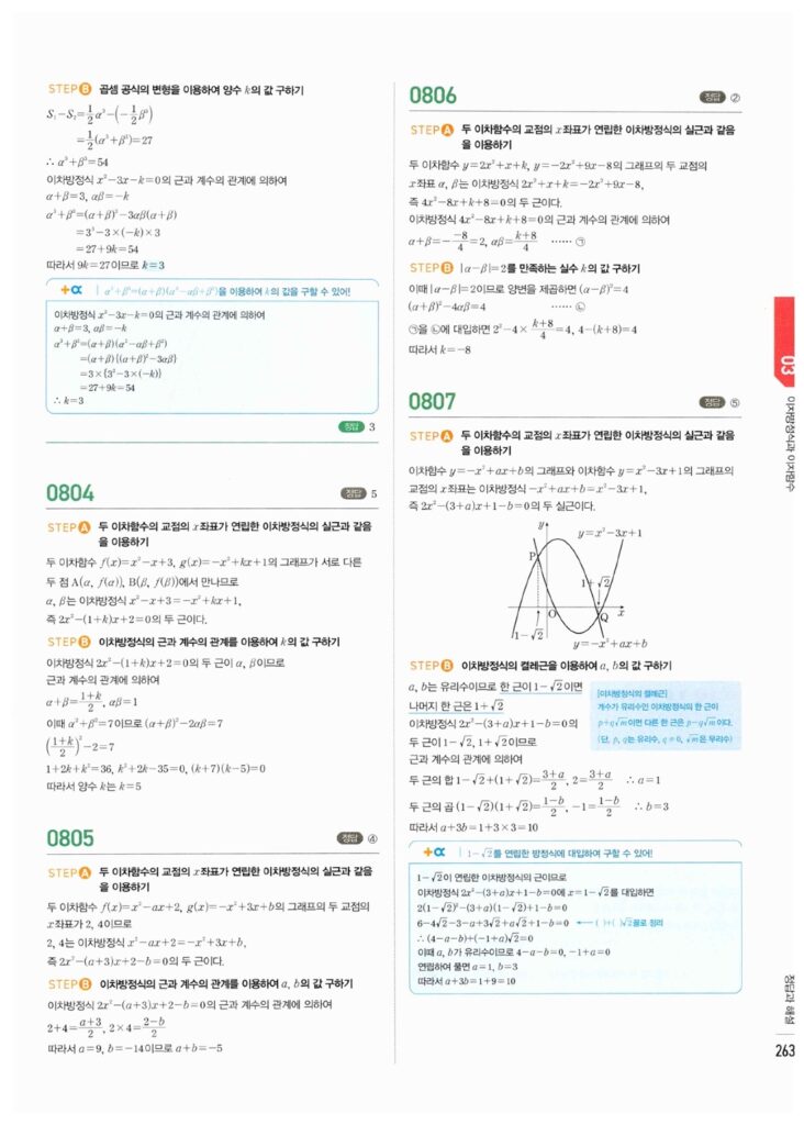 안녕하세요. **마플시너지 공통수학1** **2-3 이차방정식과 이차함수** 두 번째 파트(2/4) 정답 및 해설입니다.