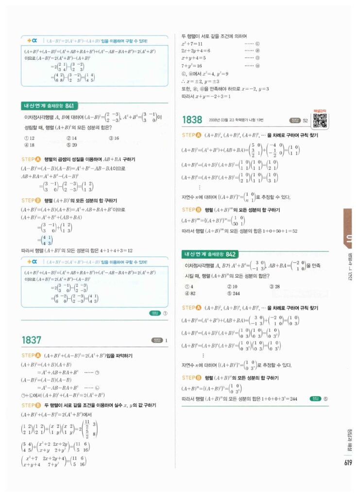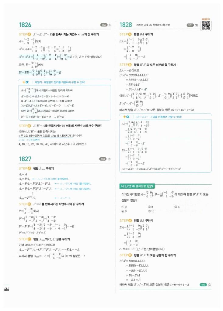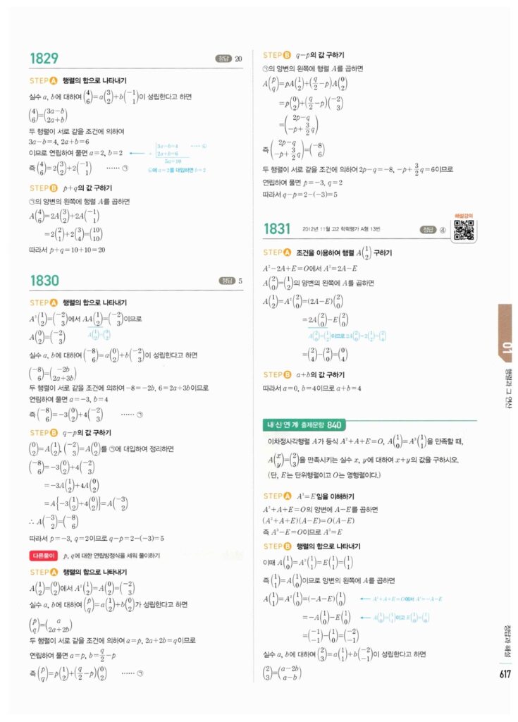 마플시너지 공통수학1 4-1 행렬과 그 연산 (2) 답지
