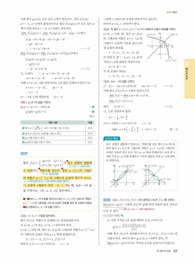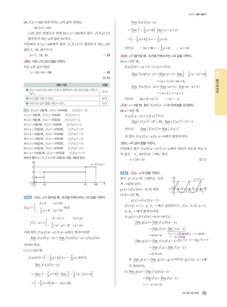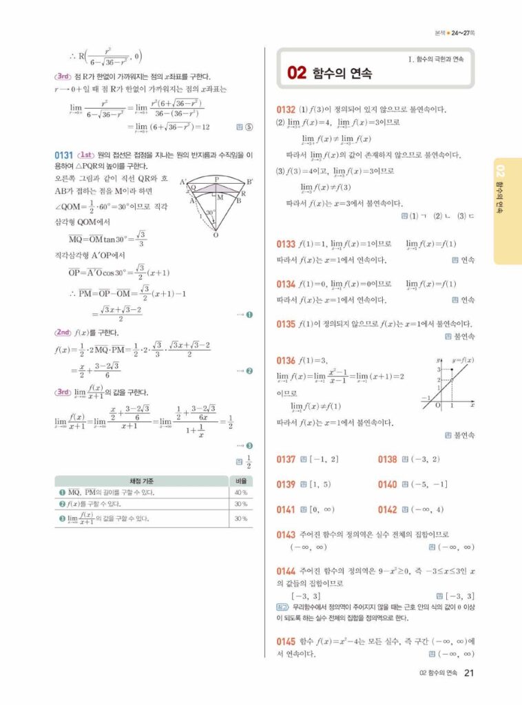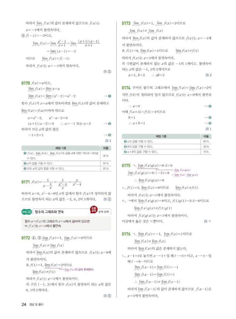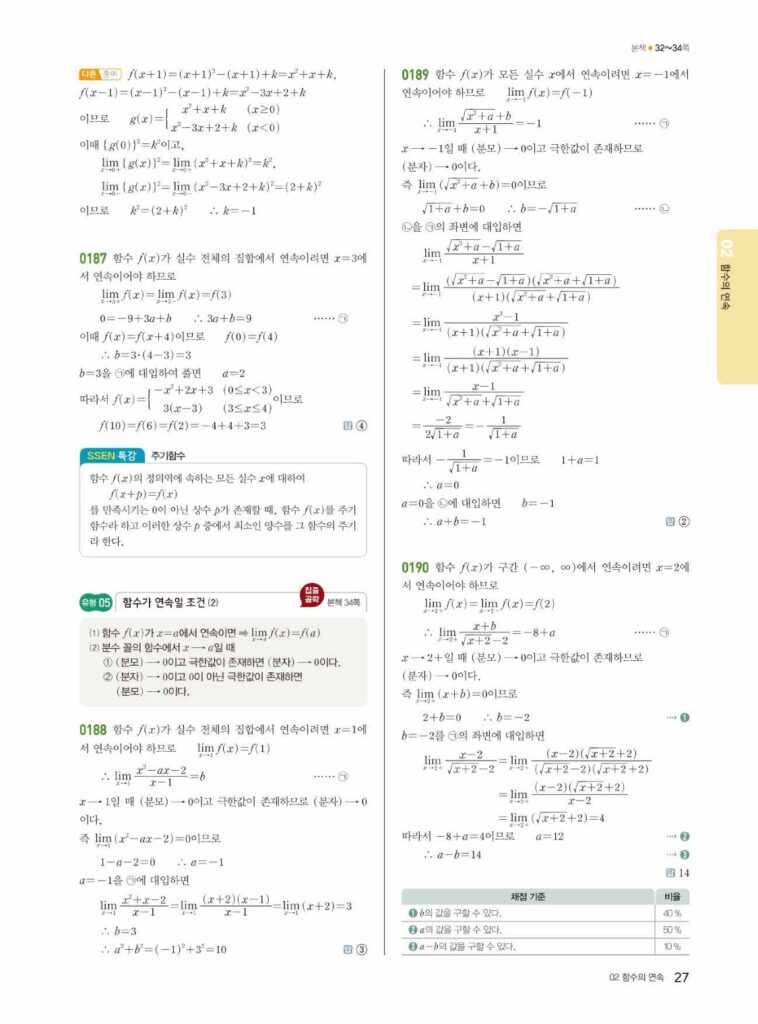 쎈 미적분1 1-2 함수의 연속 답지